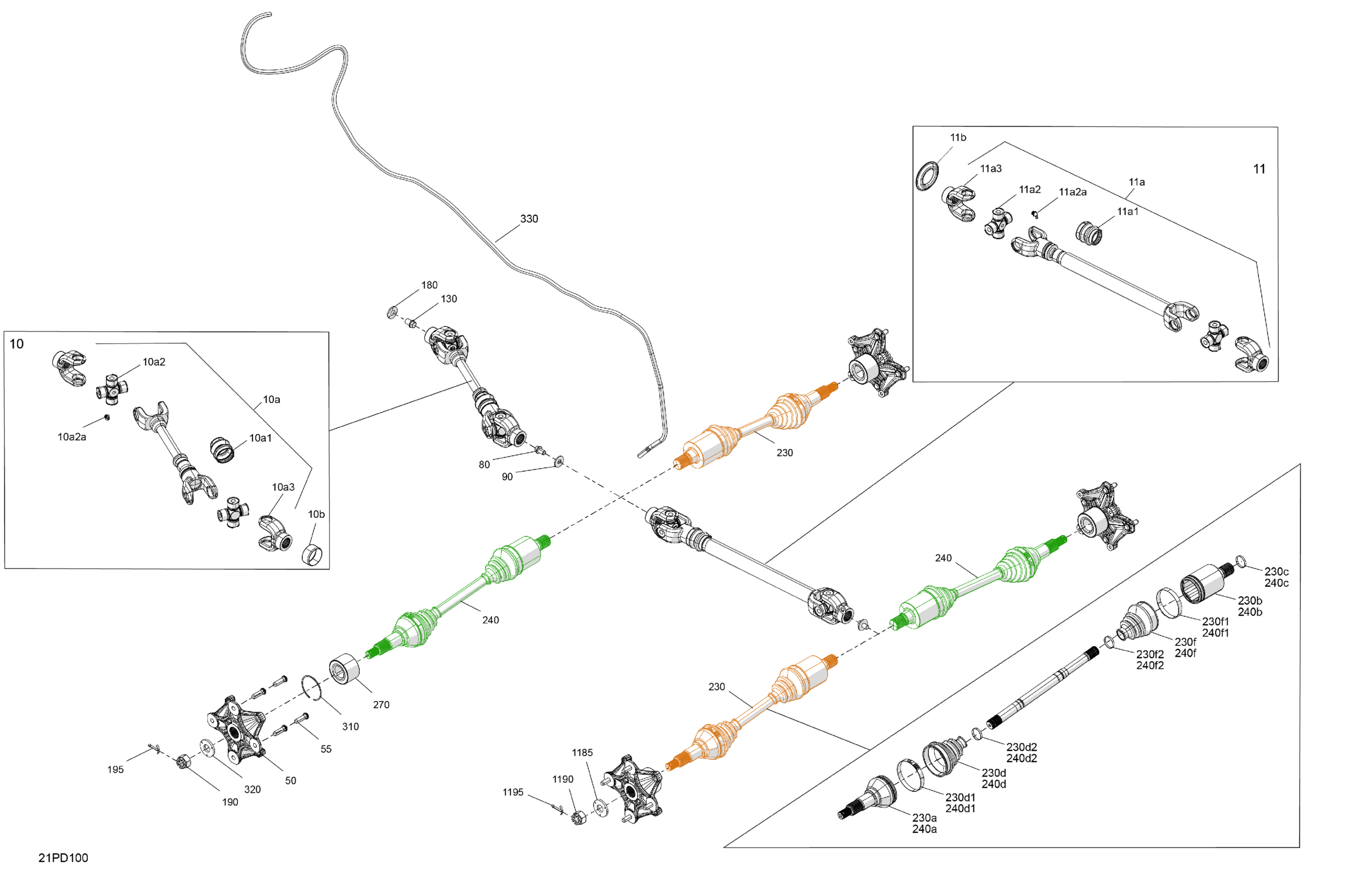 Can-Am Outlander MAX 450 EFI 6X6 - 5ERA - XU+ Package - Tundra Green, 2024 Drive - Rear - Common Parts Diagram