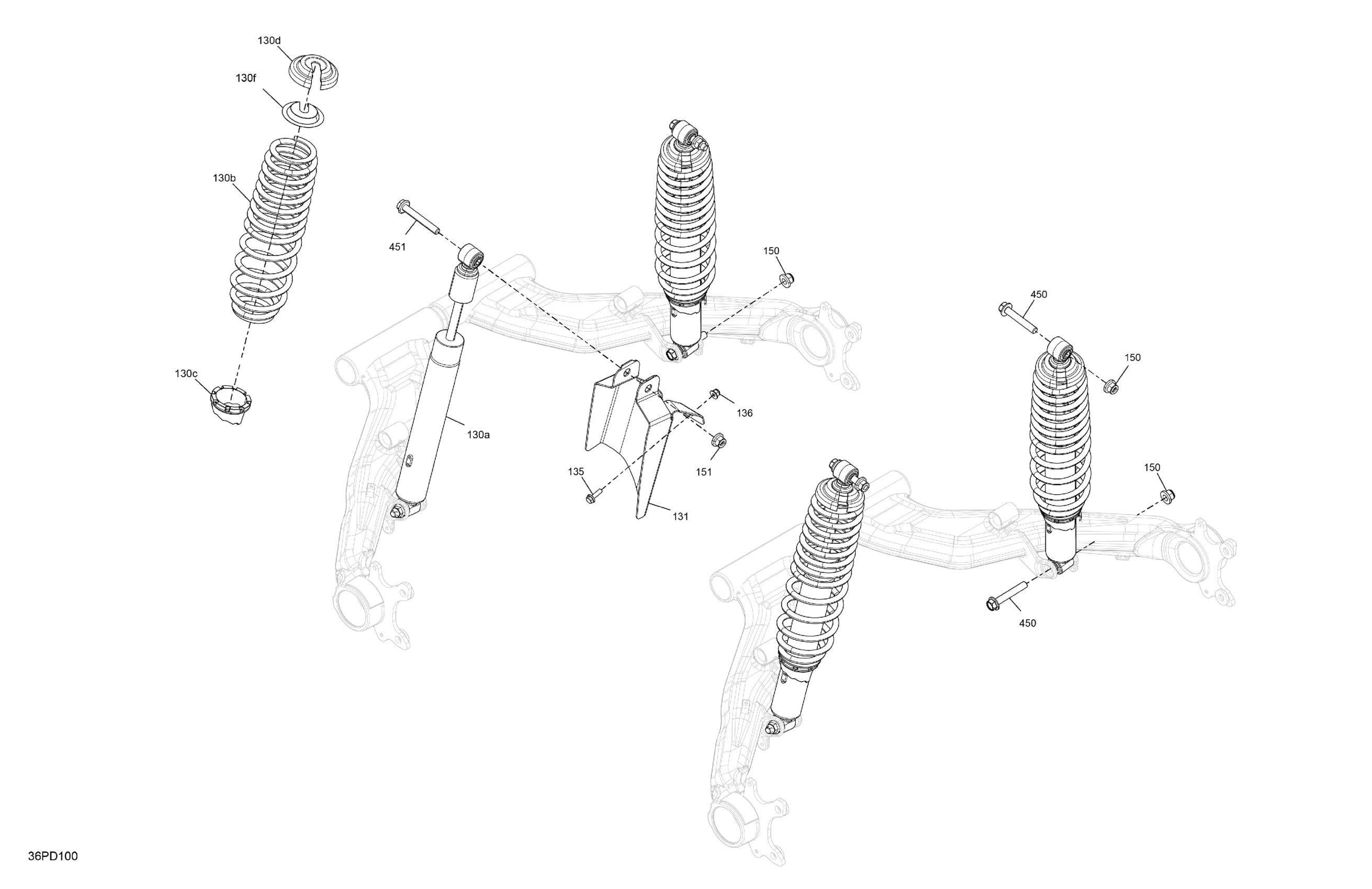 Can-Am Outlander MAX 450 EFI 6X6 - 5ERA - XU+ Package - Tundra Green, 2024 Suspension - Rear Shocks Diagram