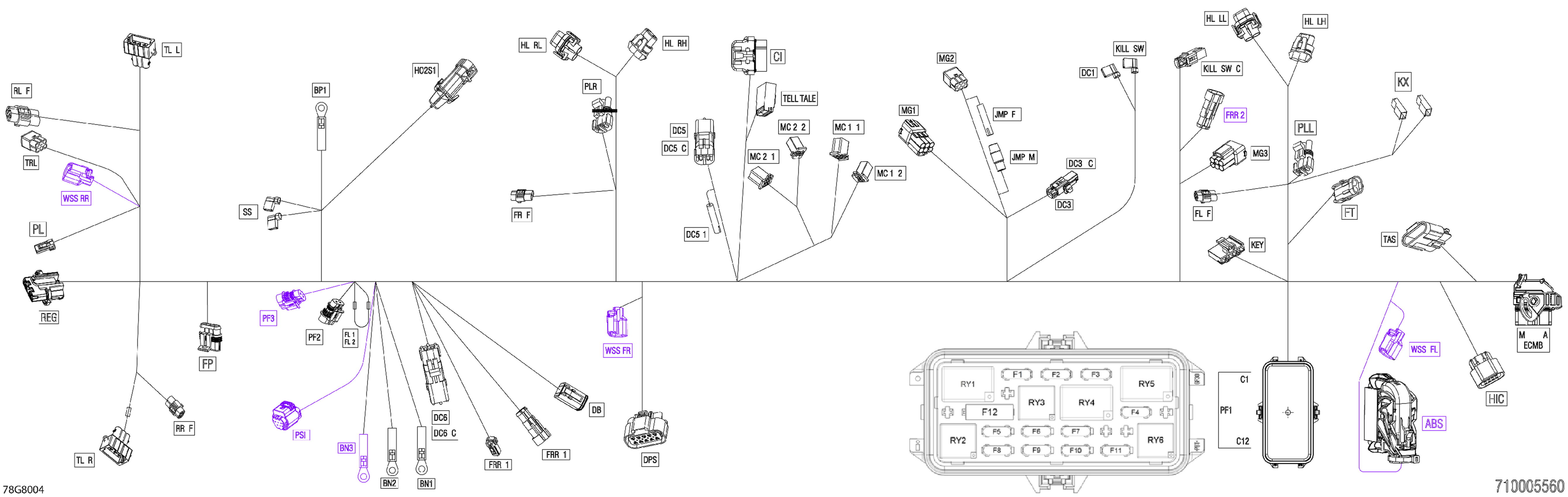 Can-Am OUTLANDER MAX - 4X4 - XT - 570 EFI - 4LJB - Pur Magnesium, 2018 Electric - Main Harness - 710005560 Diagram