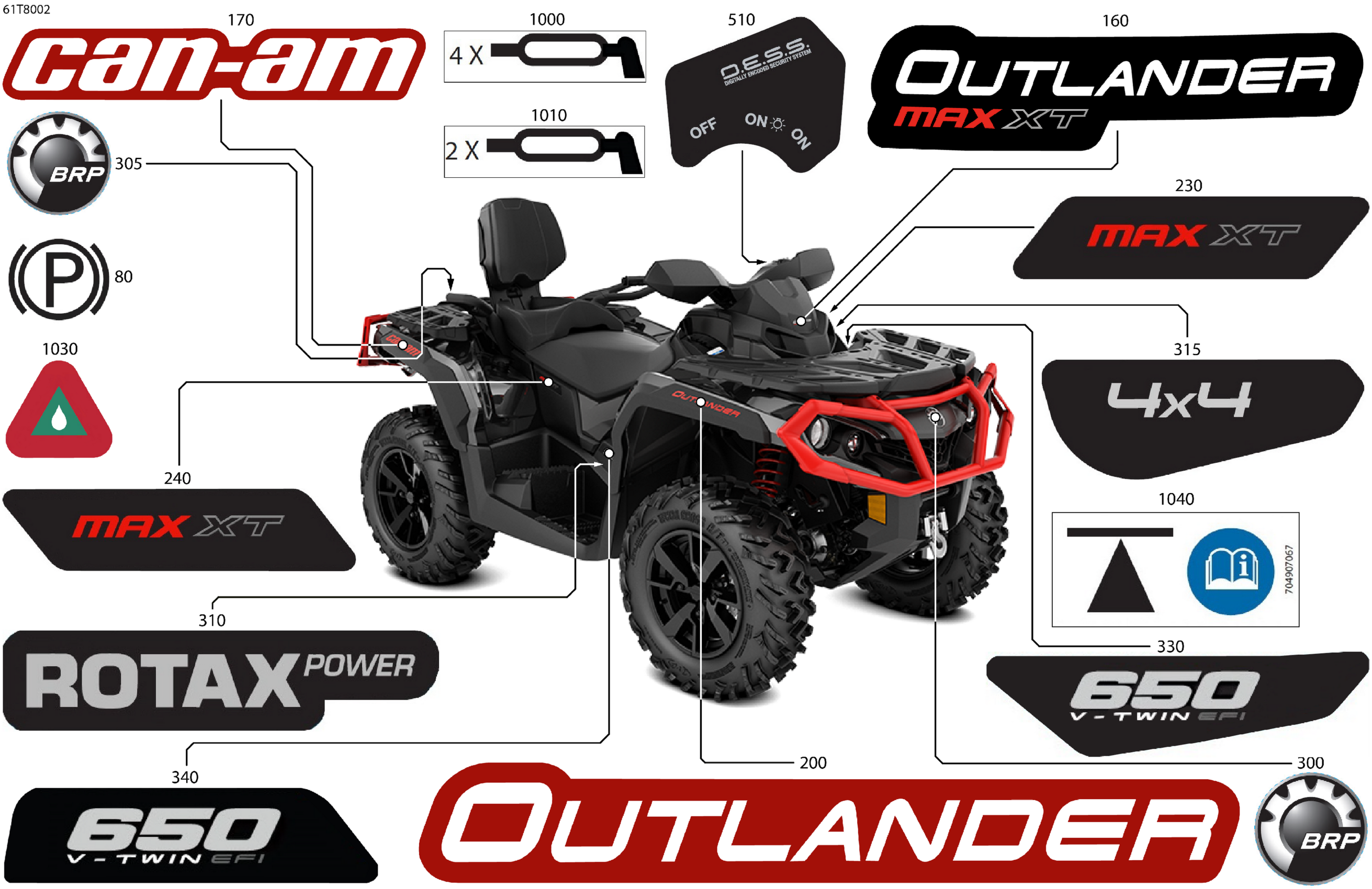 Can-Am OUTLANDER MAX - 4X4 - XT - 650 EFI - 1ZJB - Intense Red Satin, 2018 Body - Feature Decals Diagram