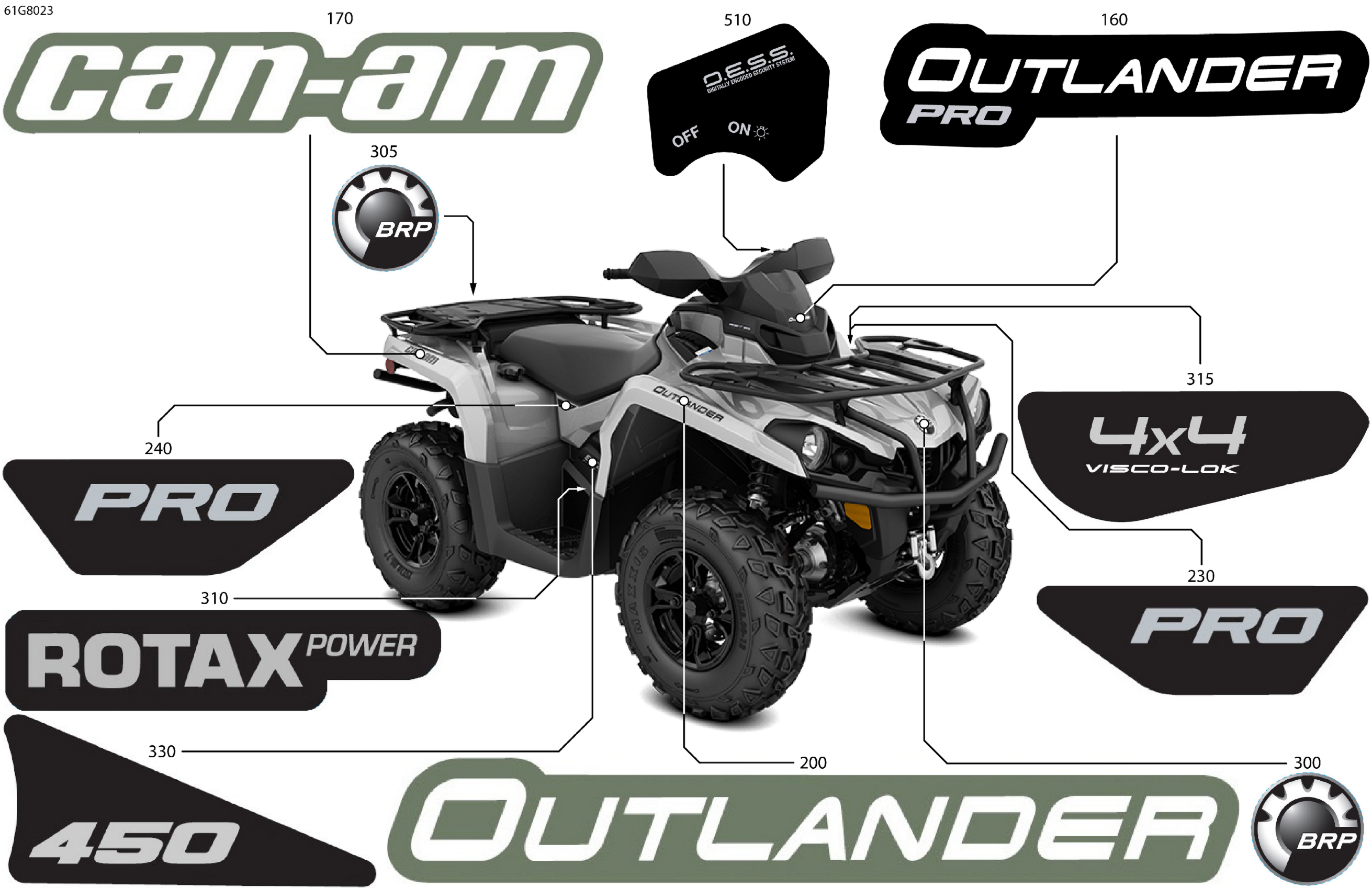 Can-Am OUTLANDER PRO - 4X4 - 450 EFI - 3NJC - Squadron Green, 2018 Body - Feature Decals Diagram