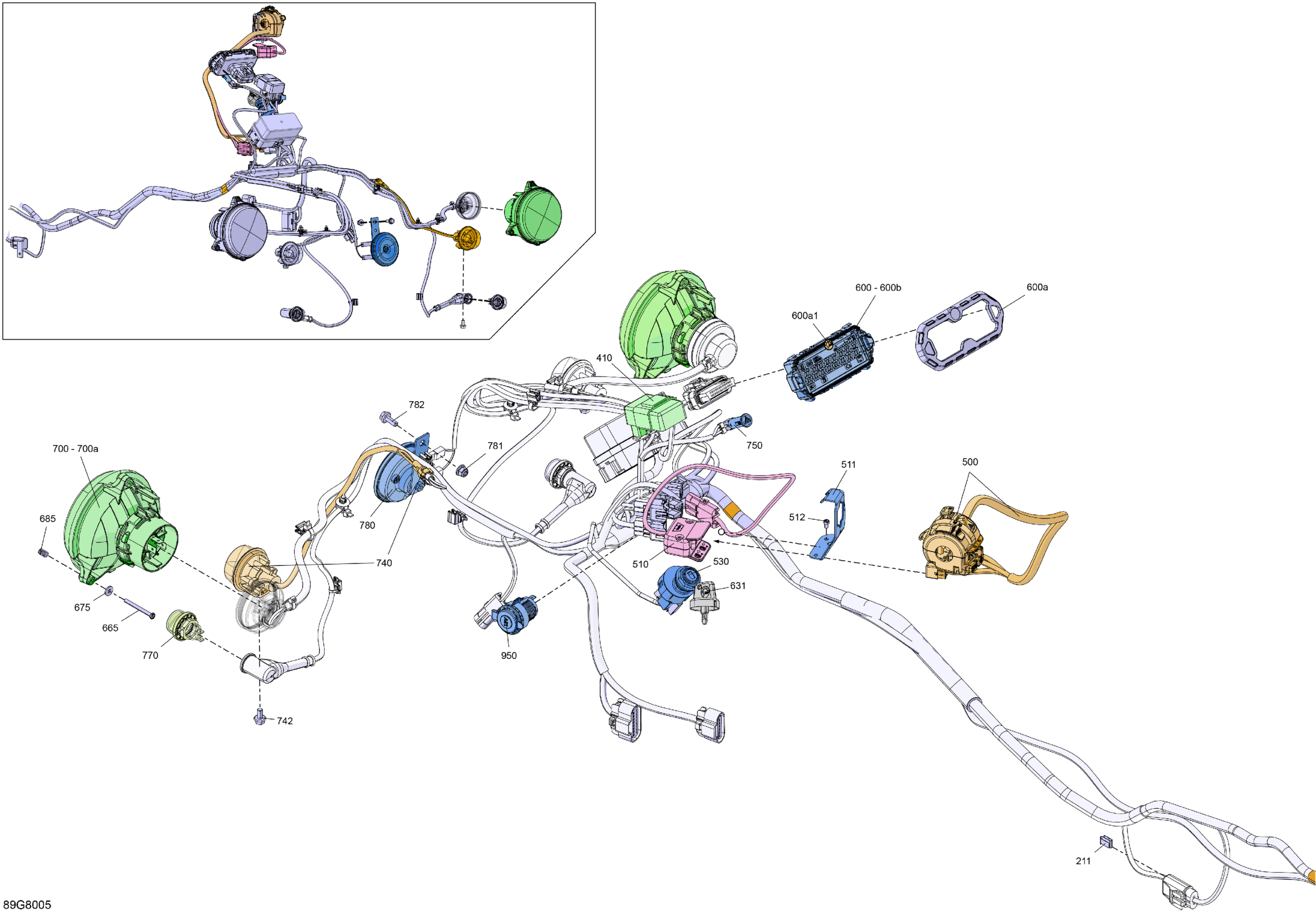 Can-Am OUTLANDER PRO - 4X4 - 450 EFI - 3NJC - Squadron Green, 2018 Electric - Front Section Diagram