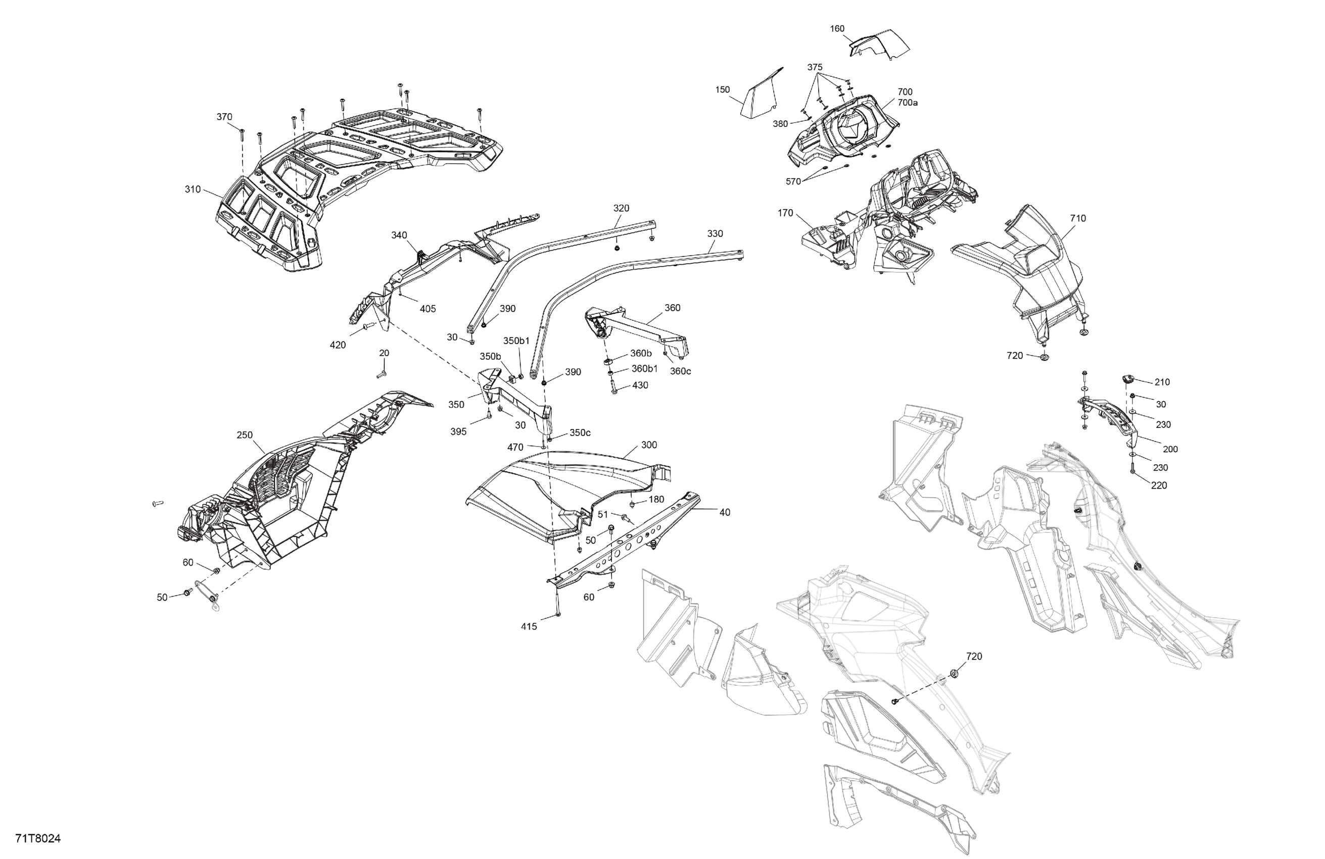 Can-Am OUTLANDER PRO - 4X4 - 650 EFI - 3PJB - Brushed Aluminium, 2018 Body - Front Section Diagram