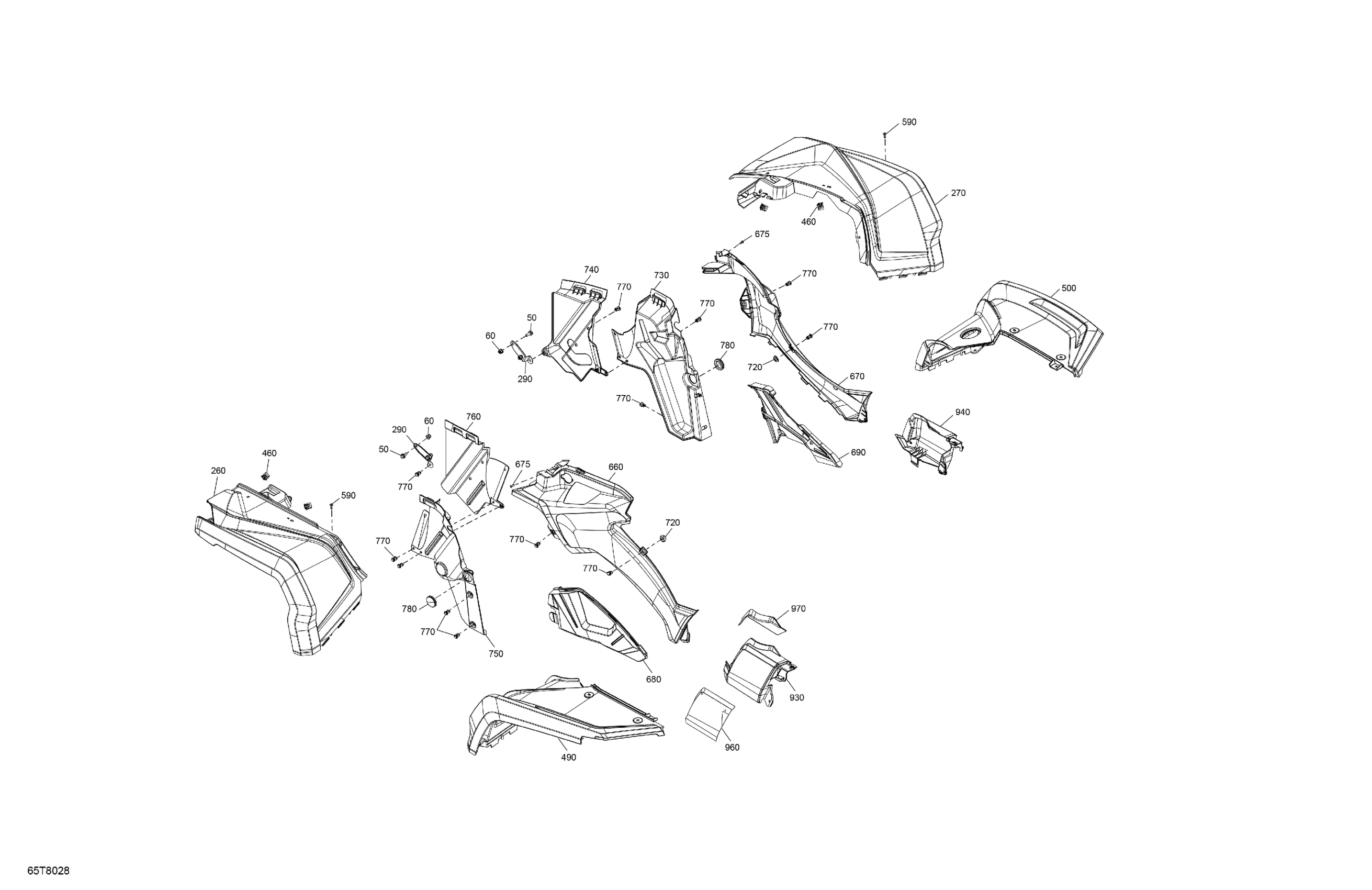 Can-Am OUTLANDER PRO - 4X4 - 650 EFI - 3TJA - Brushed Aluminium, 2018 Body - Fender Kit Diagram