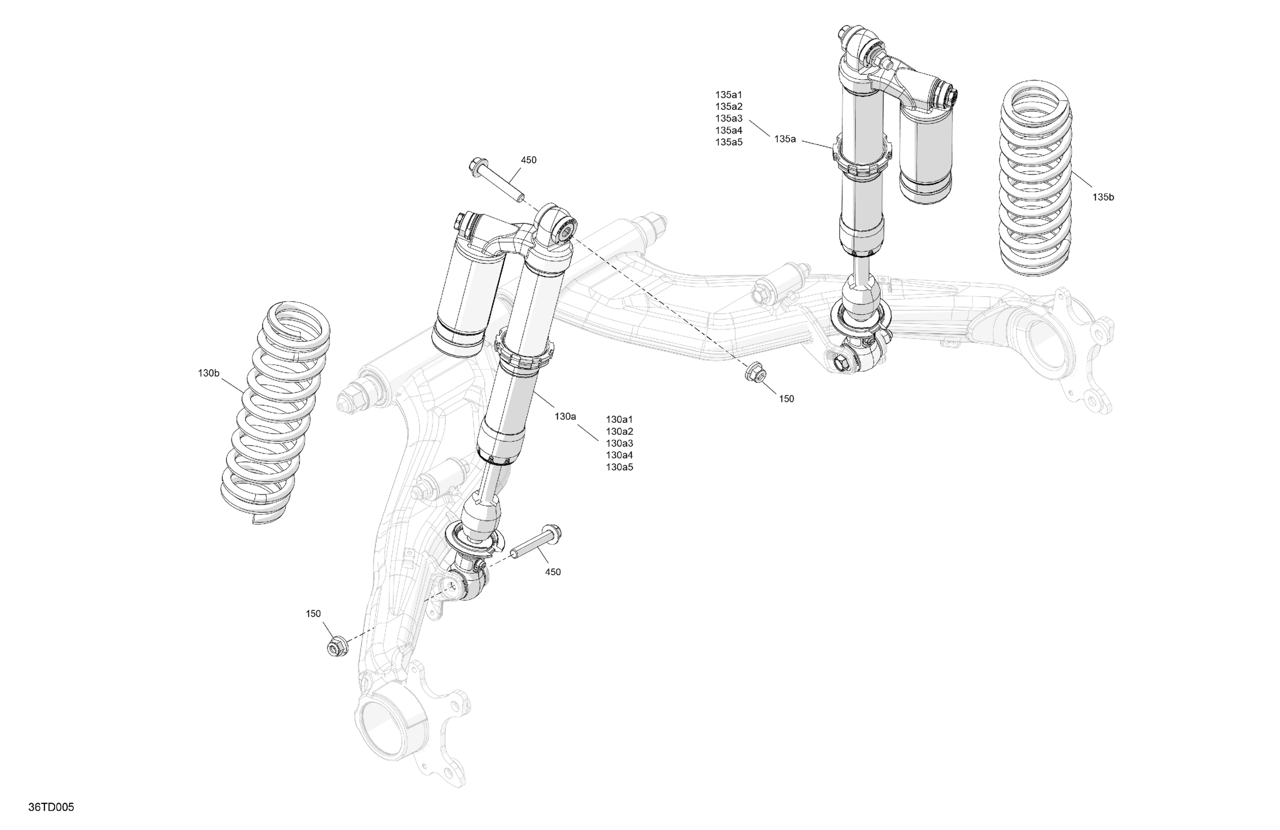Can-Am Renegade 1000R EFI - 5VRA - X XC Package - Catalyst Gray, 2024 Suspension - Rear Shocks Diagram
