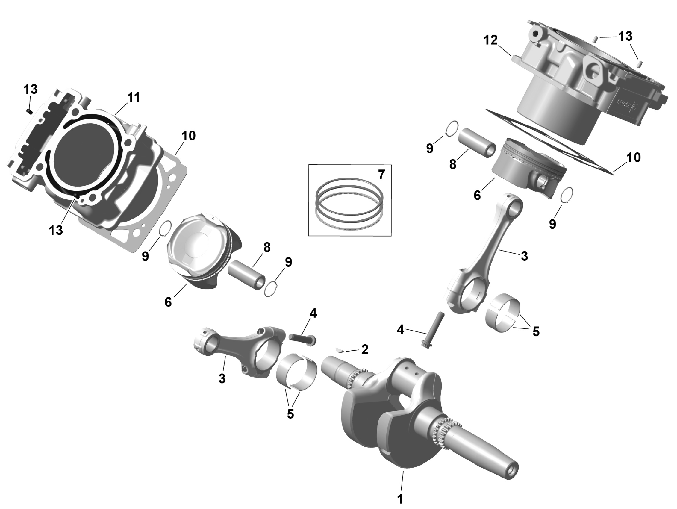 Can-Am RENEGADE - 4X4 - XXC - 1000 EFI - 5MTA - Catalyst Gray - 2026 ROTAX - Crankshaft, Pistons and Cylinder Diagram