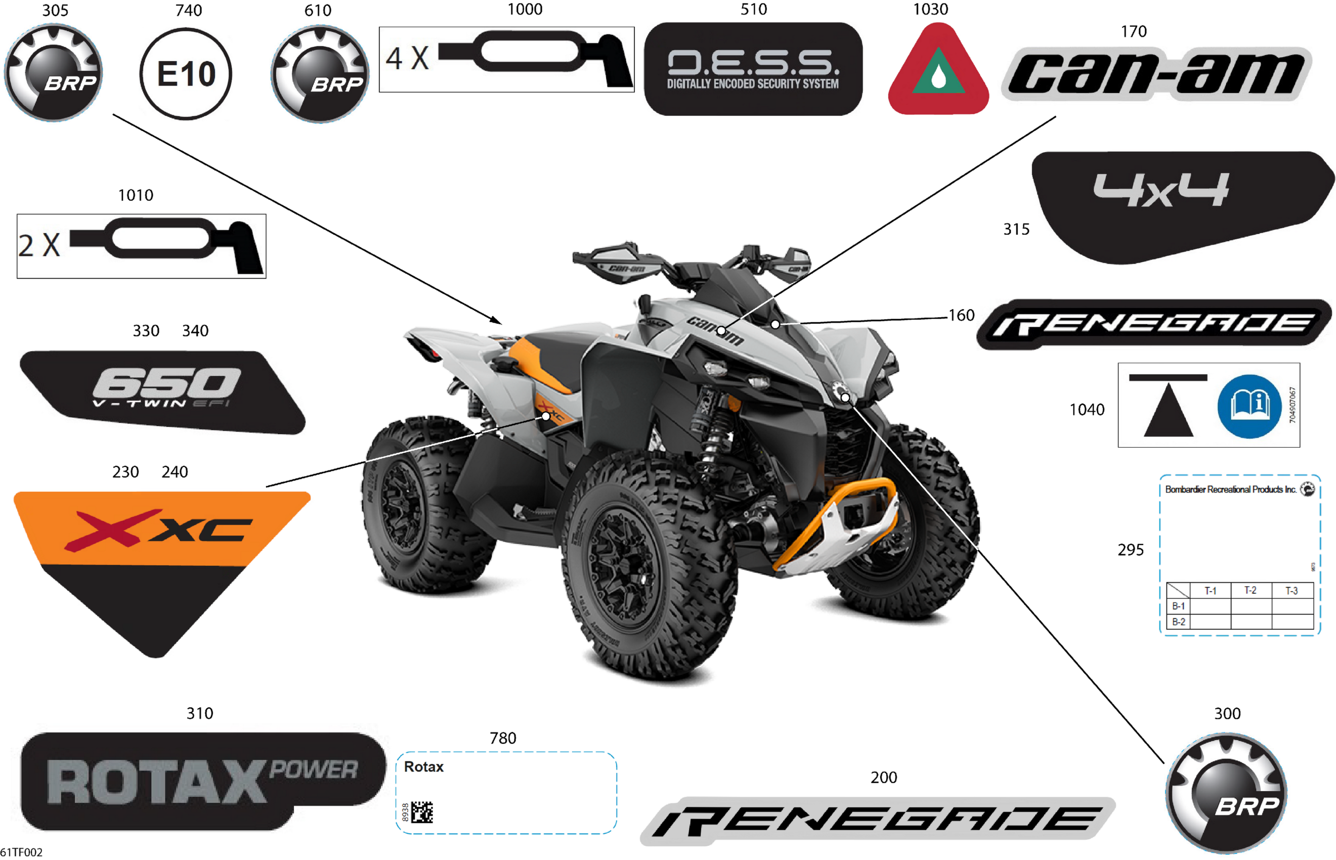 Can-Am RENEGADE - 4X4 - XXC - 650 EFI - 5RTA - Catalyst Gray - 2026 Body - Feature Decals Diagram