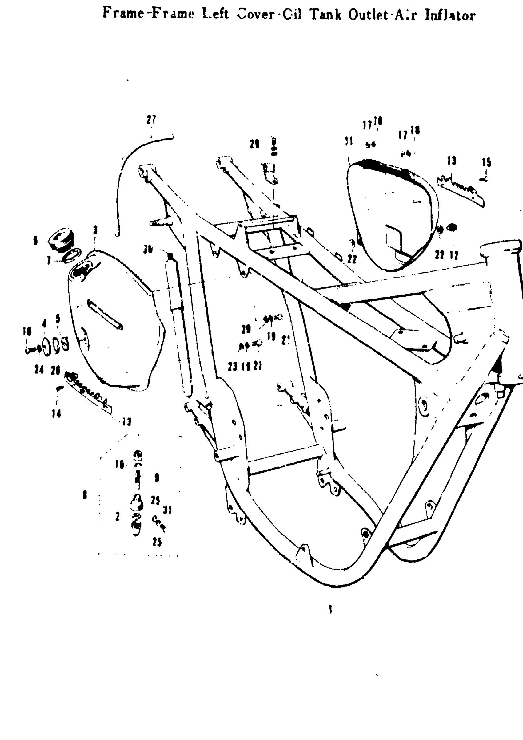 FRAME - FRAME LEFT COVER - OIL TANK - OIL TANK OUTLET - AIR INFLATOR