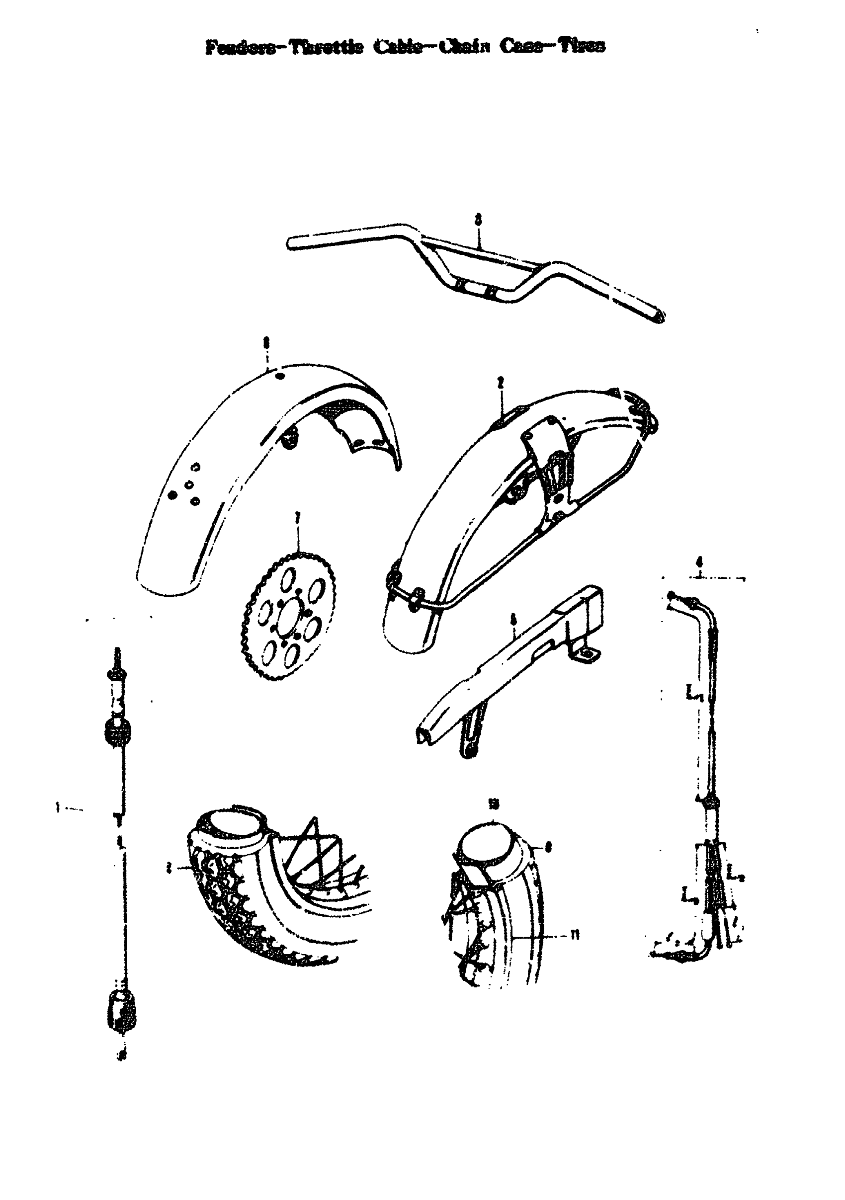 FENDERS - THOTTLE CABLE-CHAIN CASE-TIRES