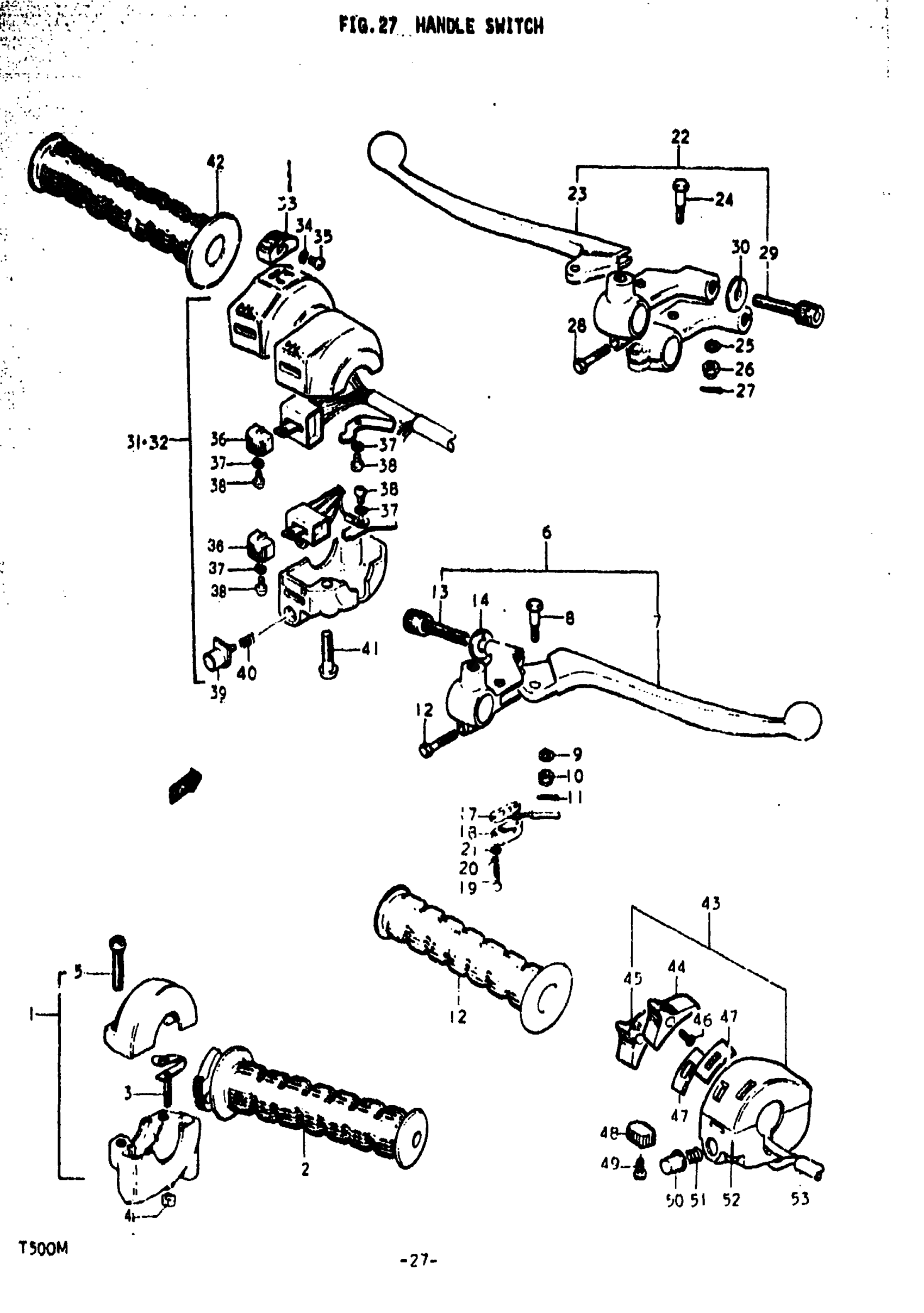 Suzuki T500J (1975) HANDLE SWITCH Diagram