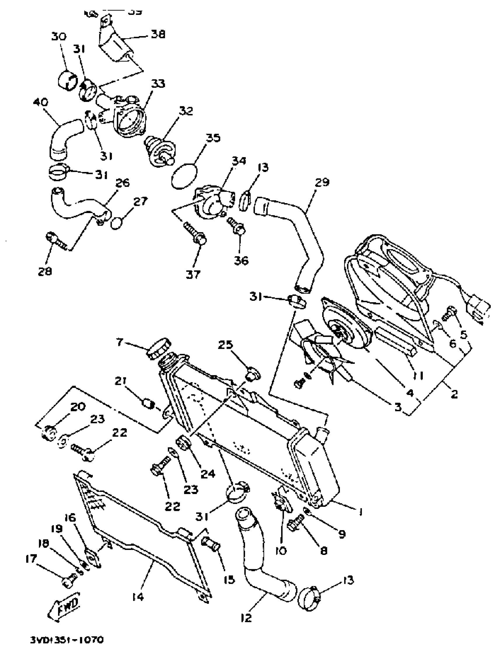 Yamaha TDM850DC (TDM850 CA) 1992 RADIATOR Diagram