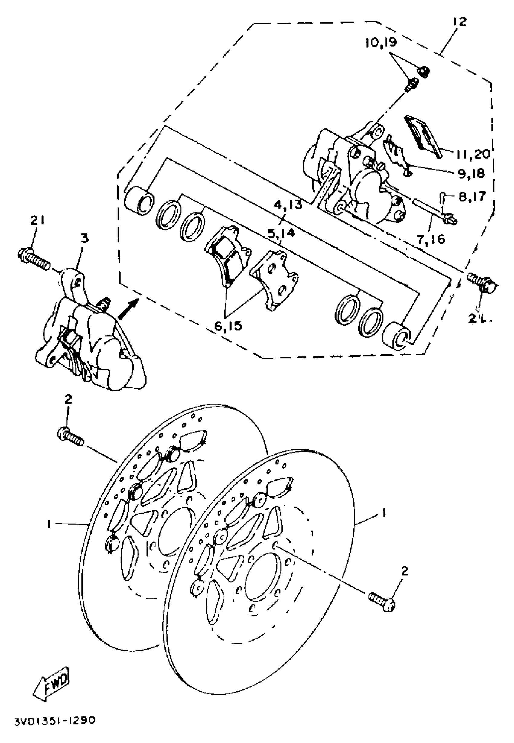 Yamaha TDM850EC (TDM850 CA) 1993 FRONT BRAKE CALIPER Diagram