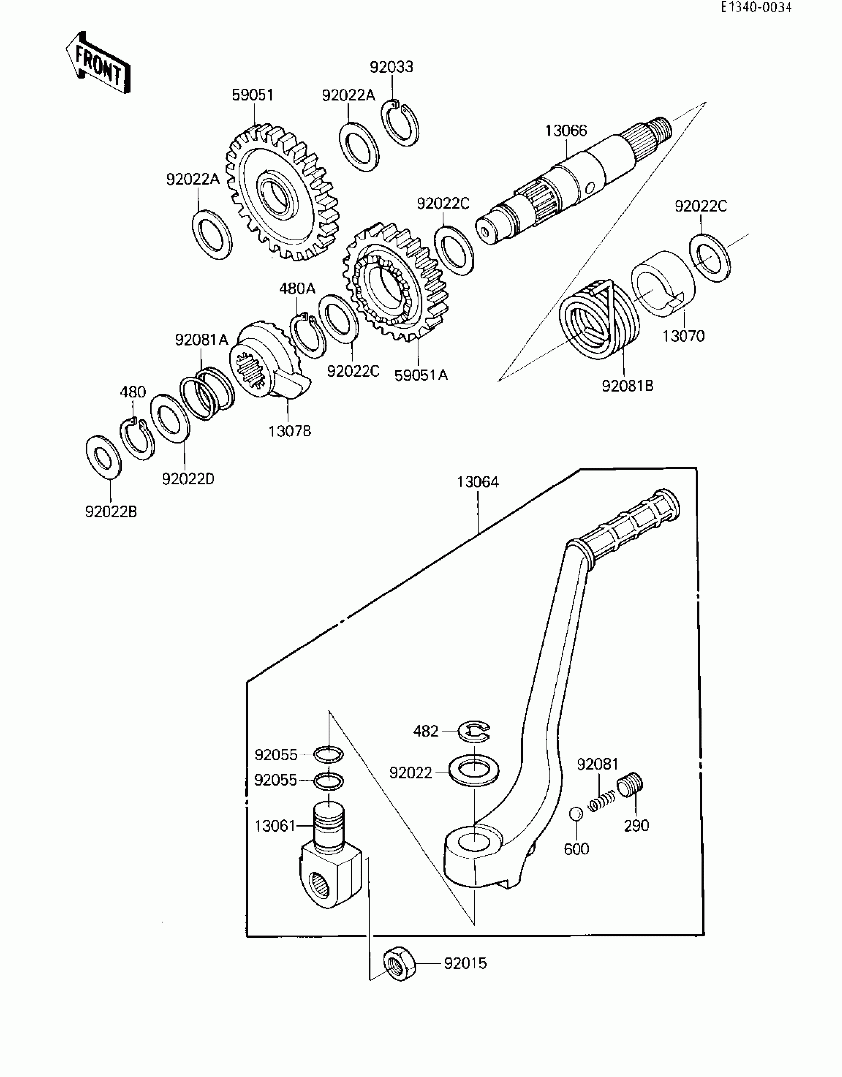 Kawasaki Tecate KICKSTARTER MECHANISM Diagram