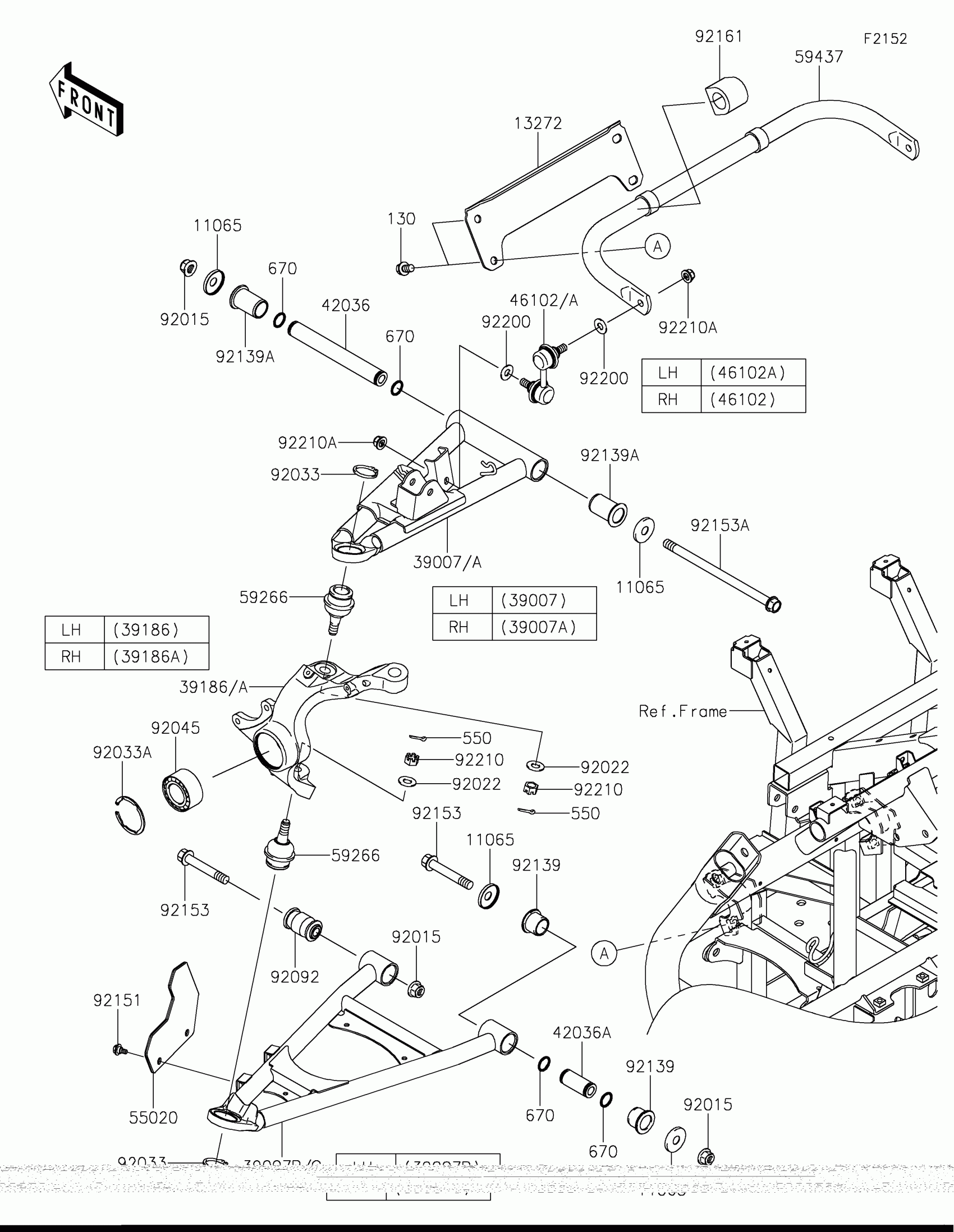 Kawasaki TERYX® CAMO Front Suspension Diagram
