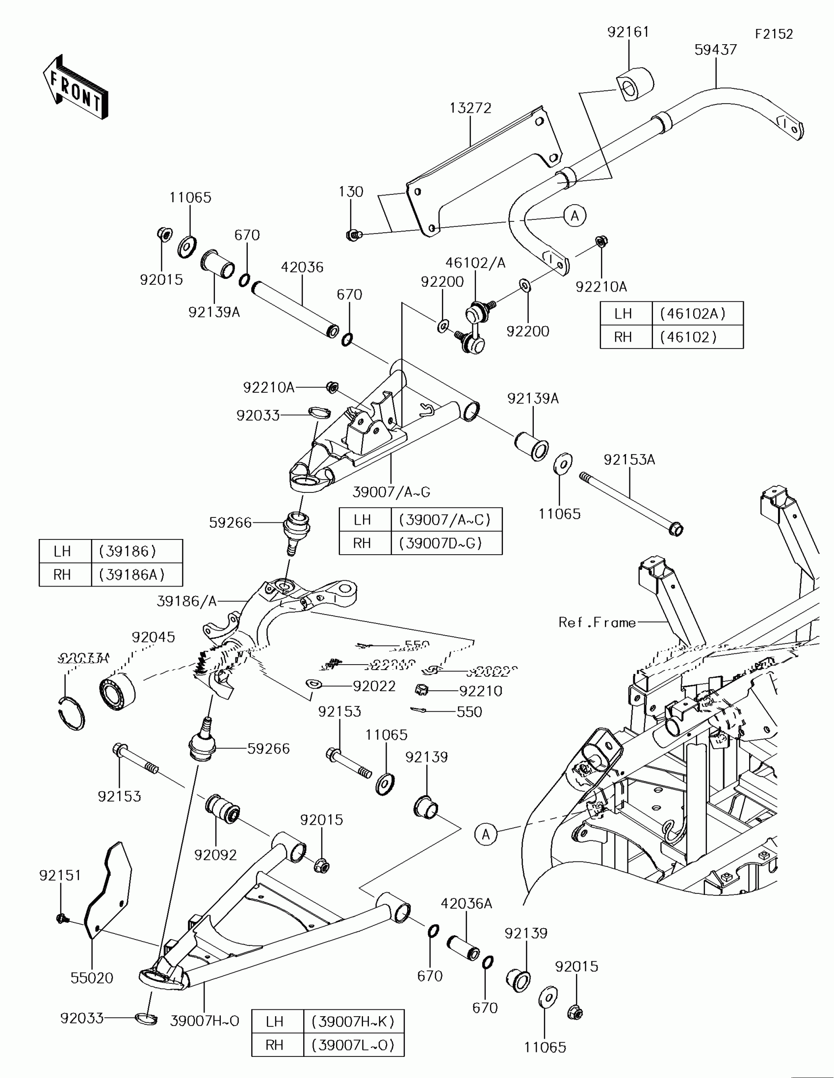Kawasaki TERYX4™ LE Front Suspension Diagram