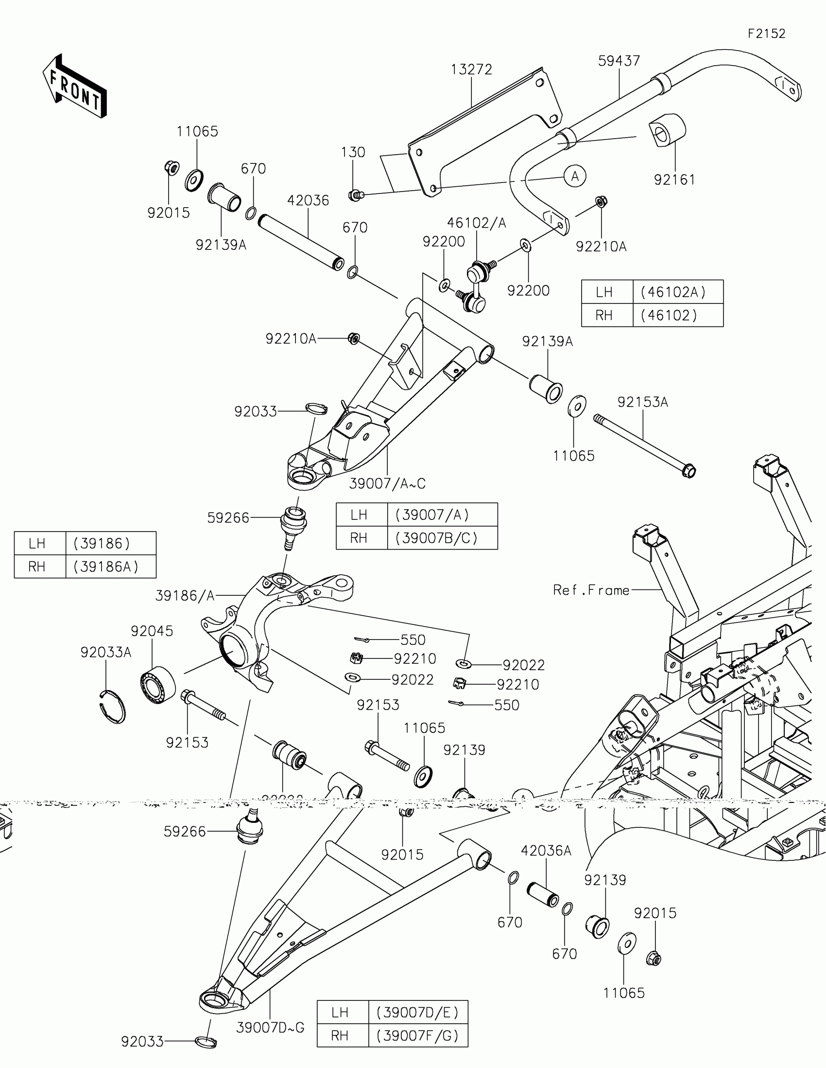 Kawasaki TERYX4™ S Front Suspension Diagram