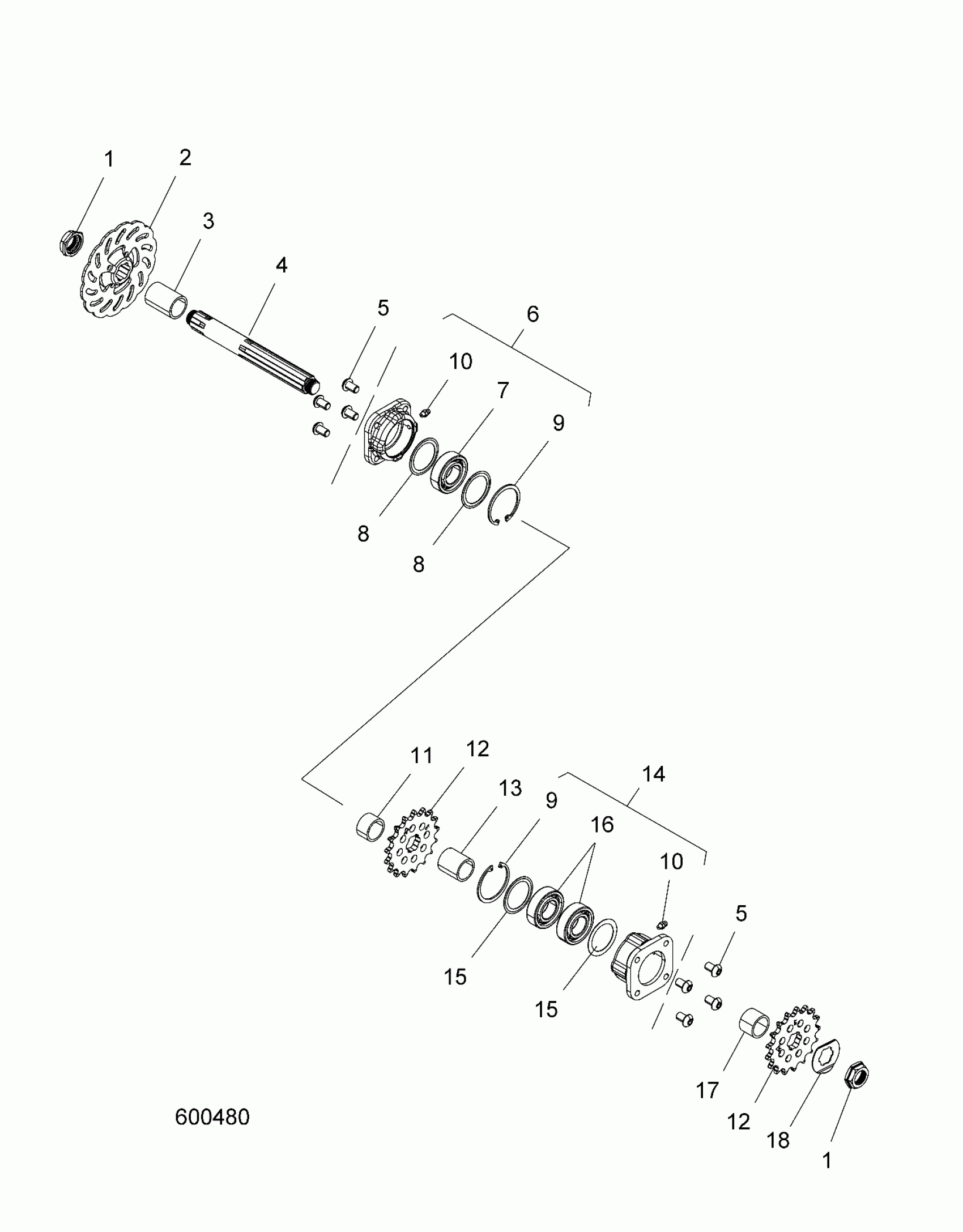 DRIVE TRAIN, JACKSHAFT AND BRAKE DISC - TIMBERSLED ST, LT, SX 120, SX 137 (600480)