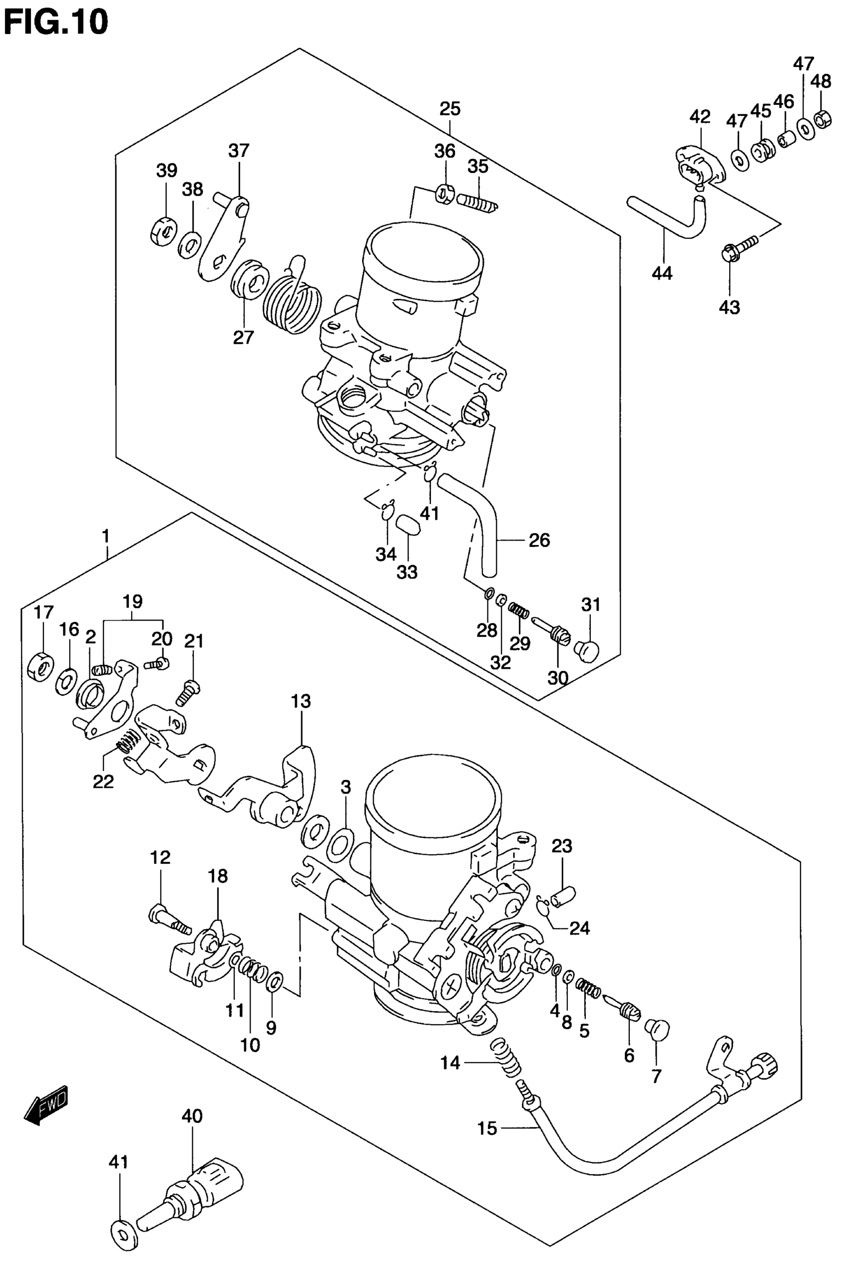 BODY ASSY, THROTTLE REAR | MODEL W/X/Y/K1 E33; Includes Item(s) 26 - 39