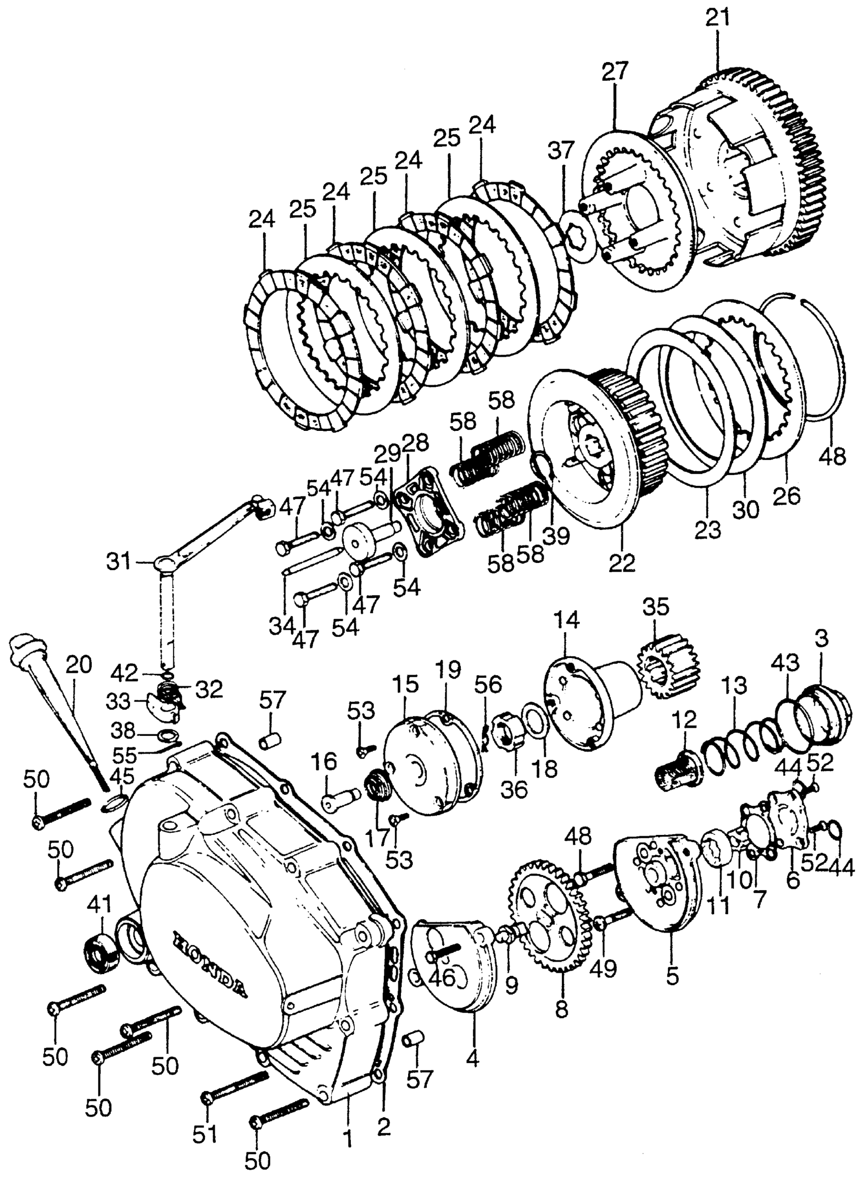 Honda TL125K1A MOTORCYCLE, JPN, VIN# TL125-1100001 RIGHT CRANKCASE COVER + CLUTCH + OIL PUMP Diagram