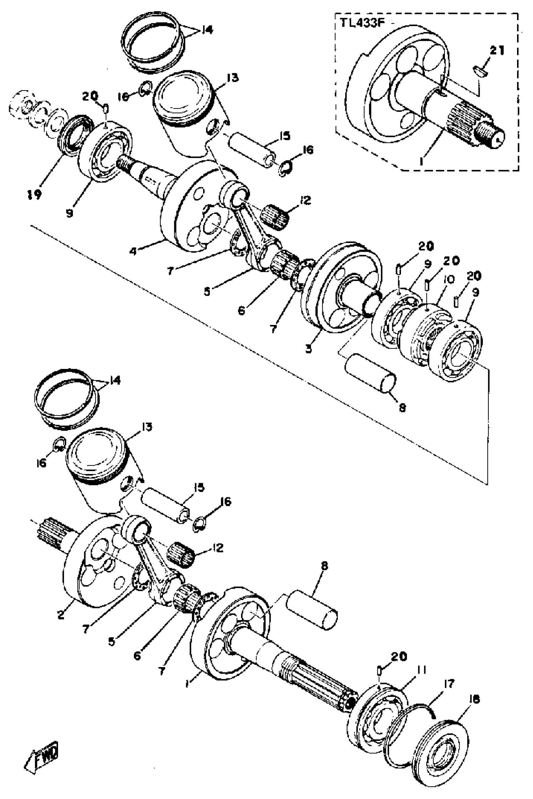 Yamaha TL433F 1974 CRANK - PISTON Diagram