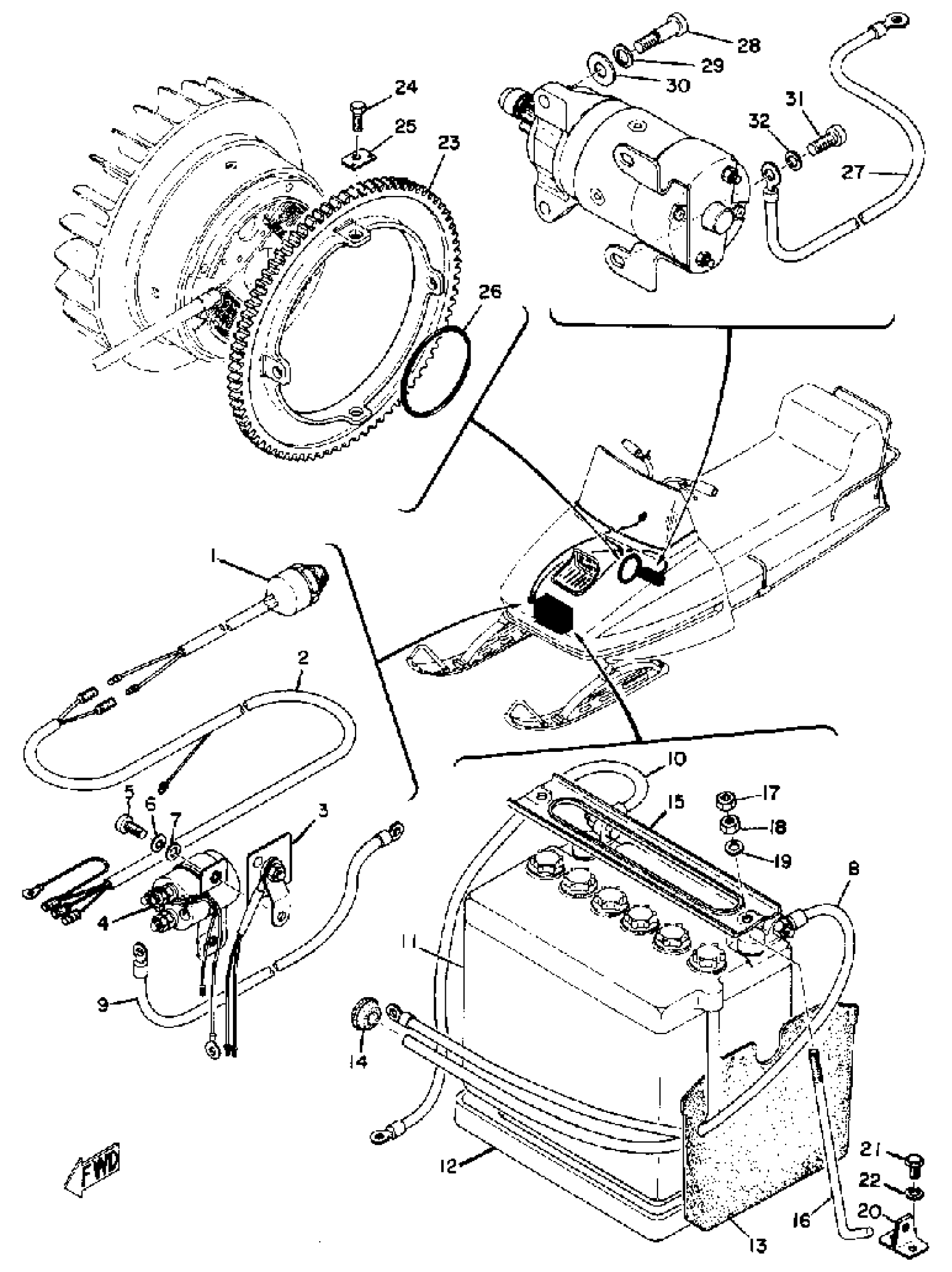 Yamaha TL433F 1974 ELECTRIC STARTER UNIT Diagram