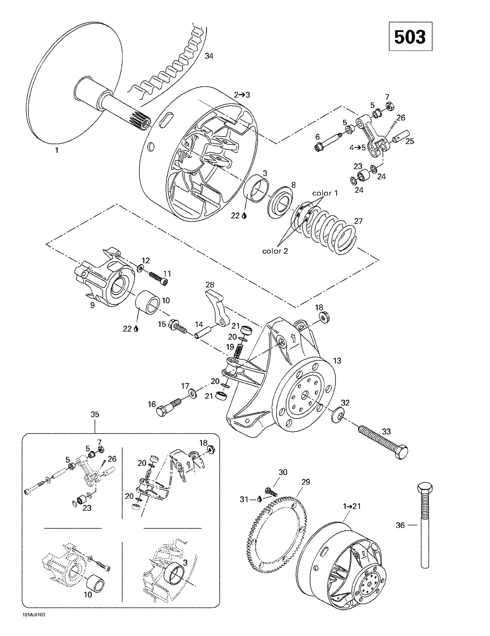 Ski-Doo Touring 380 F/500F, 2001 Drive Pulley (503) Diagram
