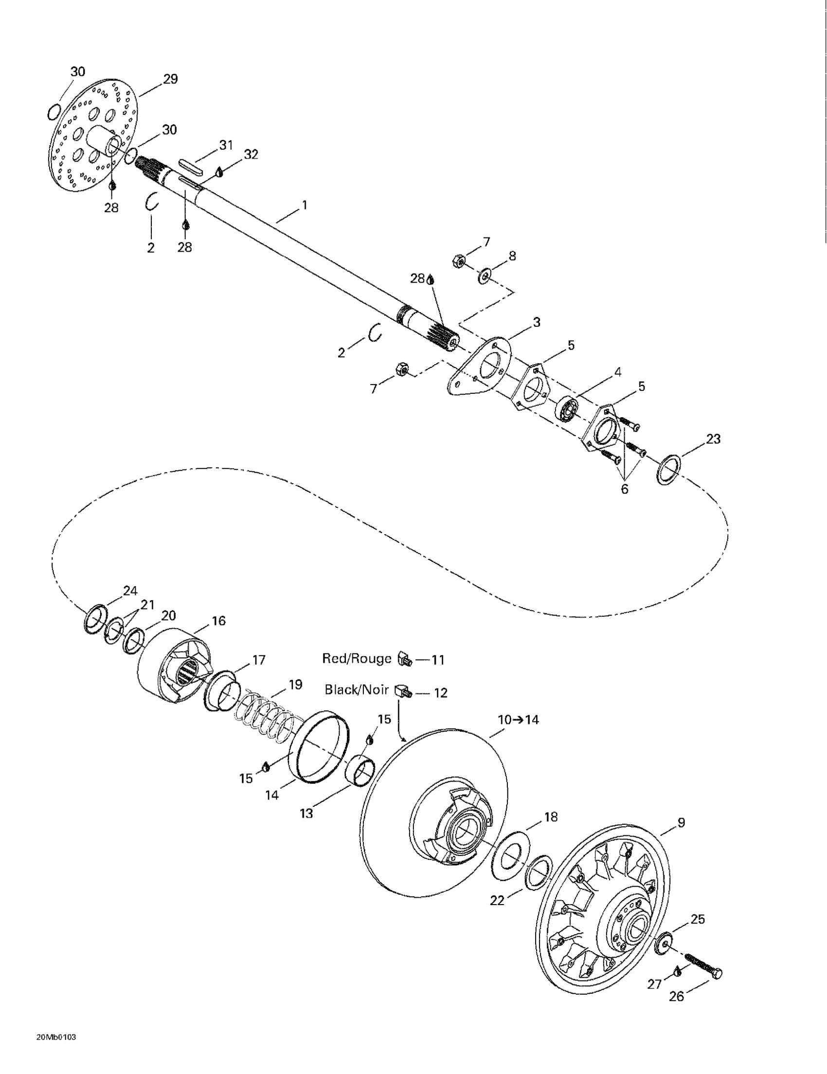 Ski-Doo Touring 380 F/500F, 2001 Driven Pulley Diagram