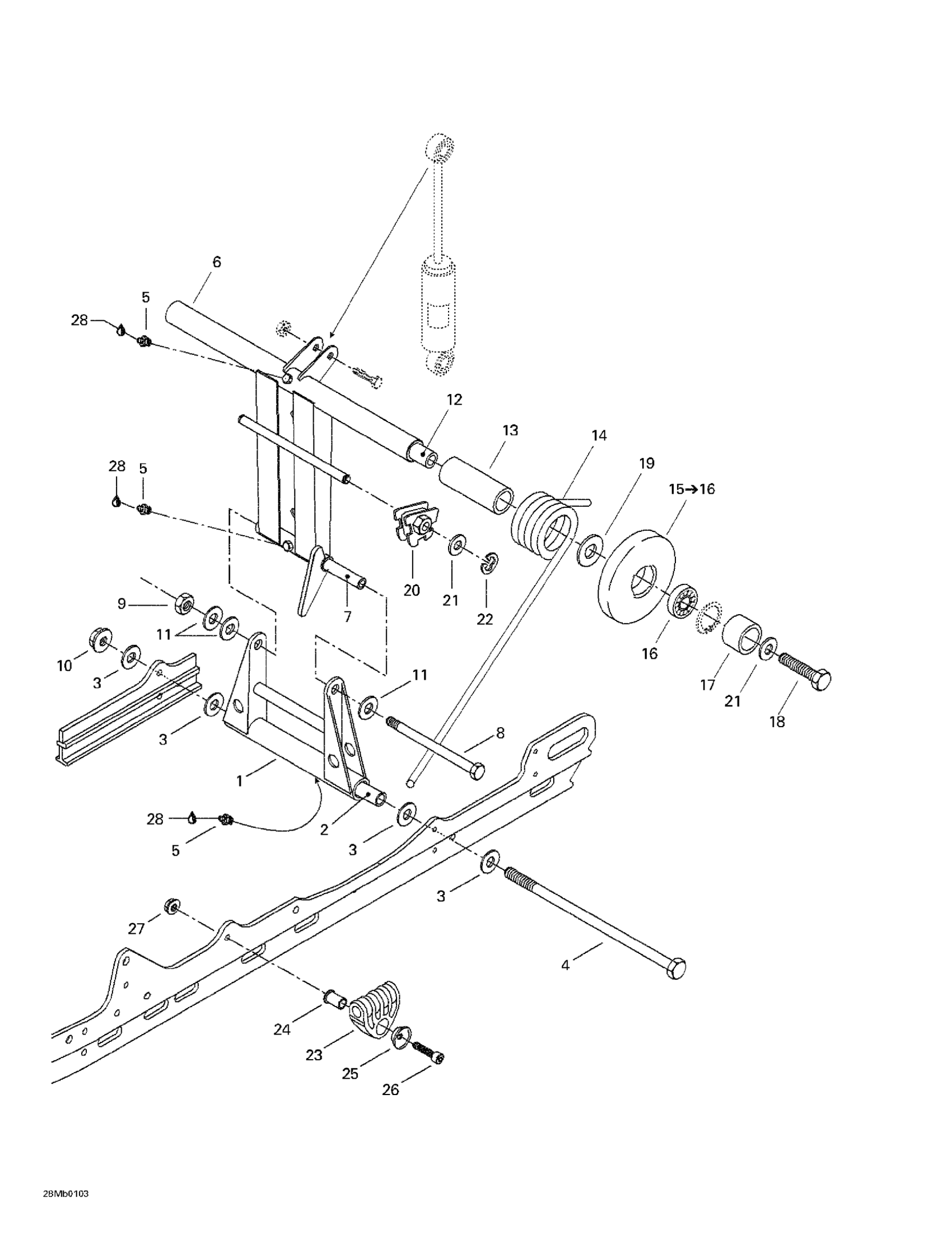 Ski-Doo Touring 380 F/500F, 2001 Rear Arm Diagram