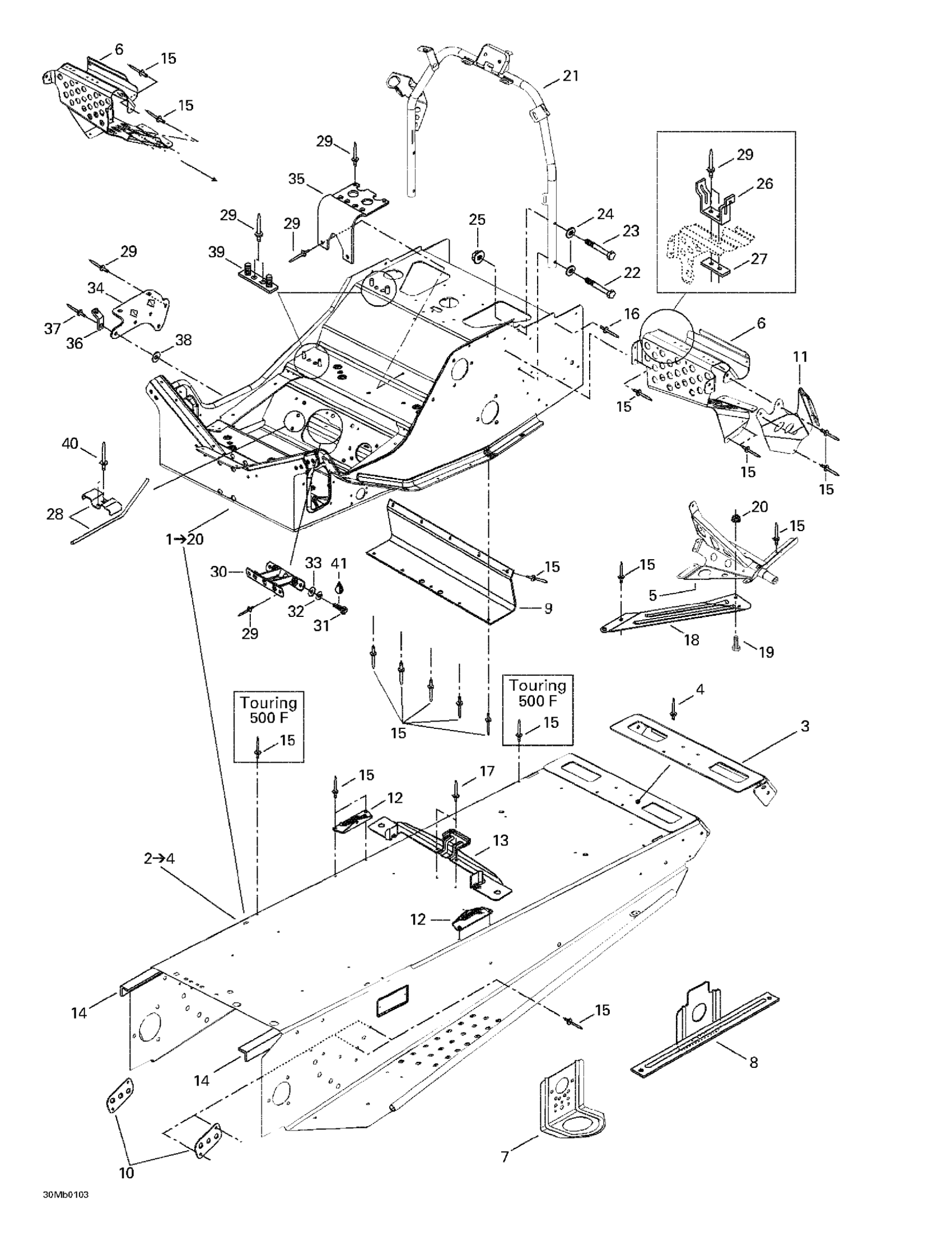 Ski-Doo Touring 380 F/500F, 2001 Frame And Accessories Diagram