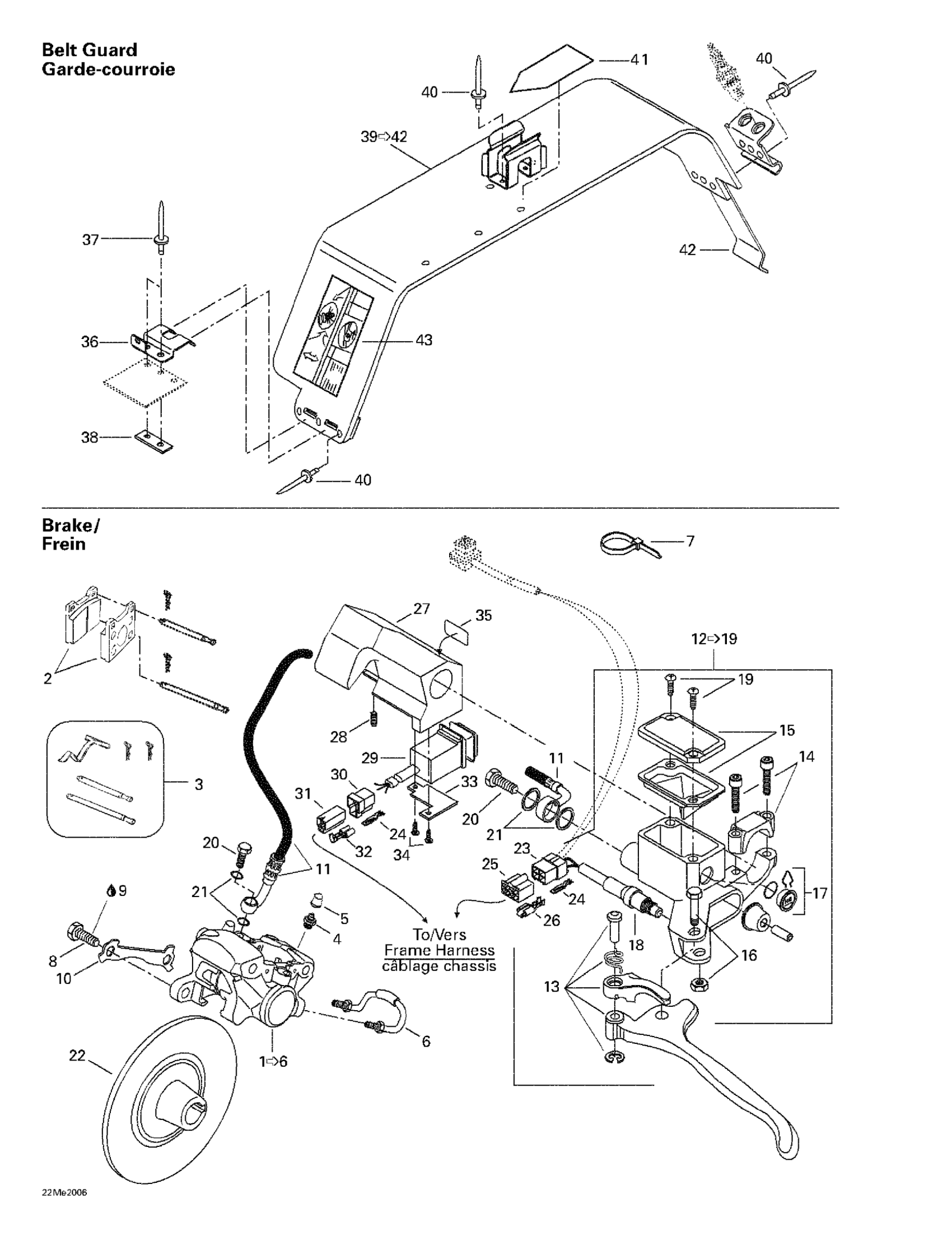 Ski-Doo Touring 500 LC, 2000 Hydraulic Brake And Belt Guard Diagram