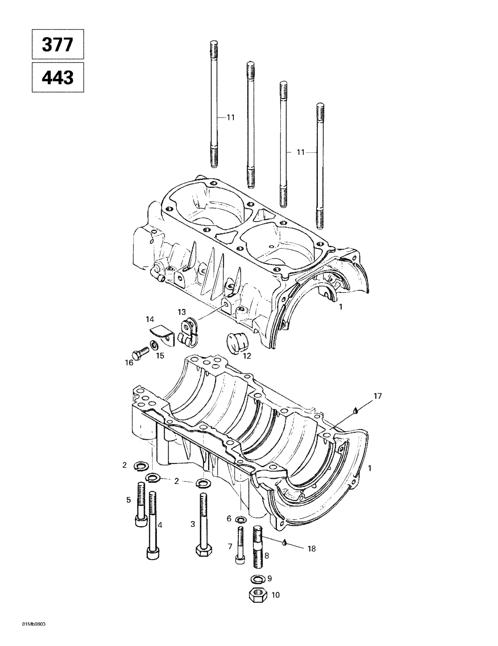 Ski-Doo Touring E, 1998 Crankcase (377, 443) Diagram