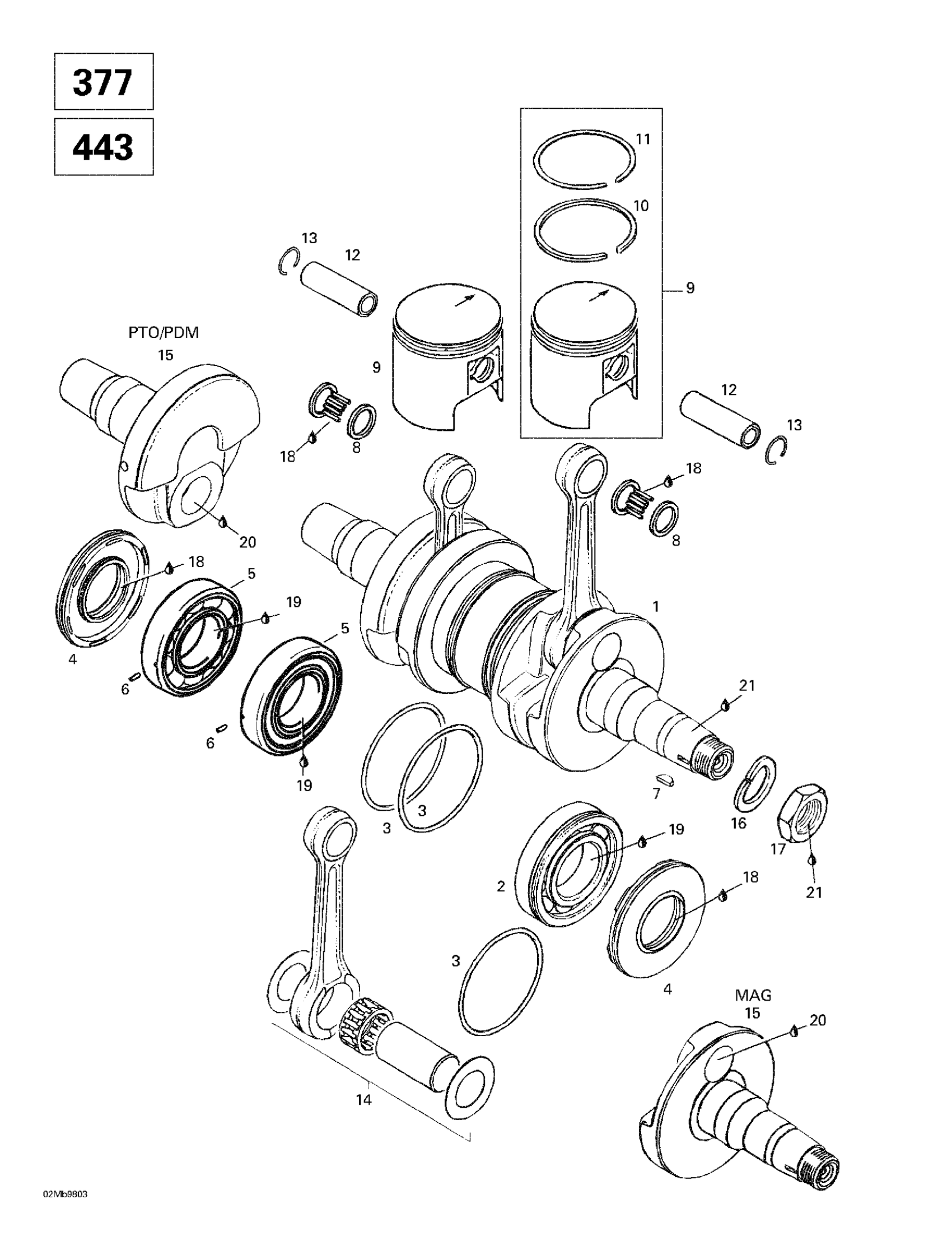 Ski-Doo Touring E, 1998 Crankshaft (377, 443) Diagram