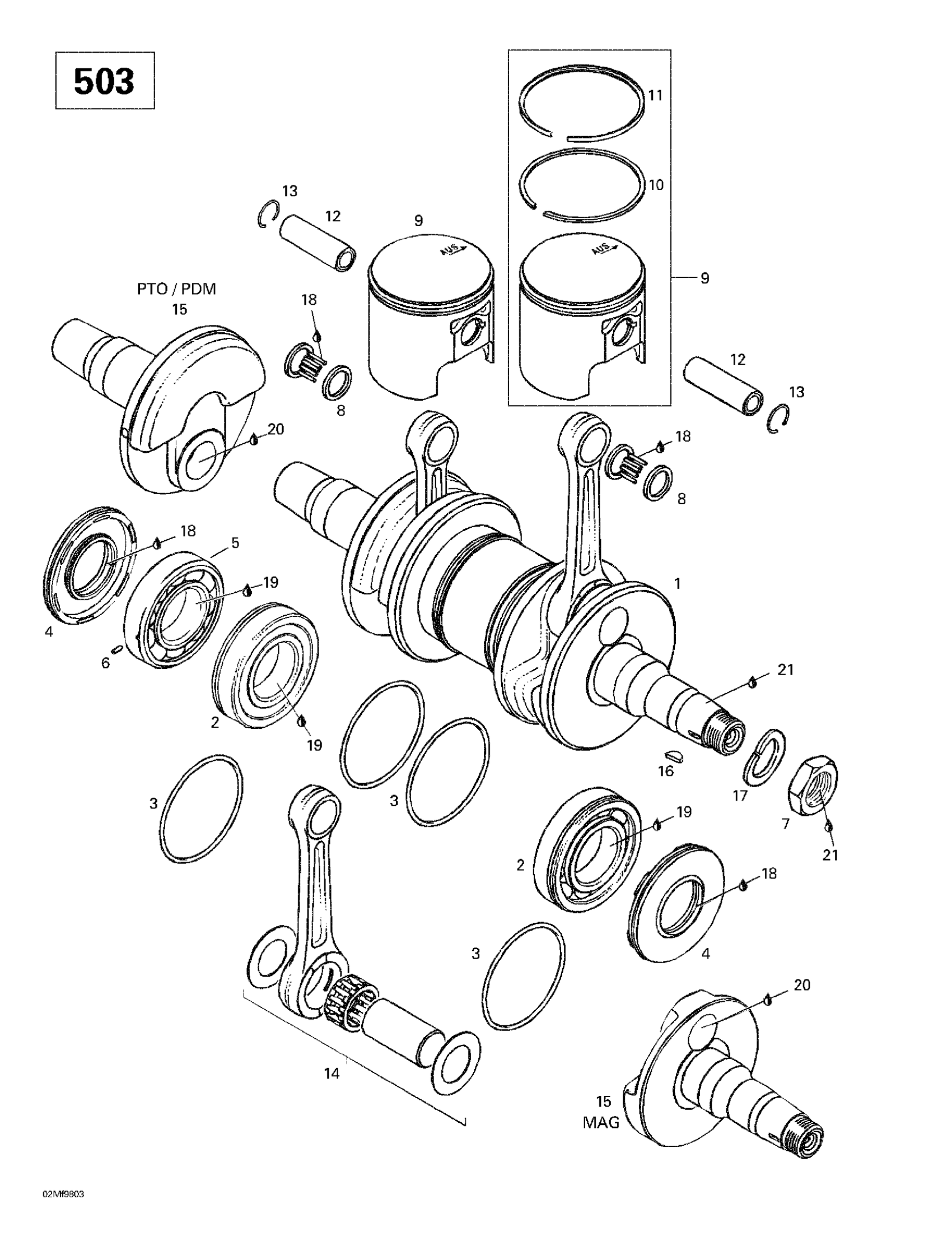Ski-Doo Touring E, 1998 Crankshaft (503) Diagram