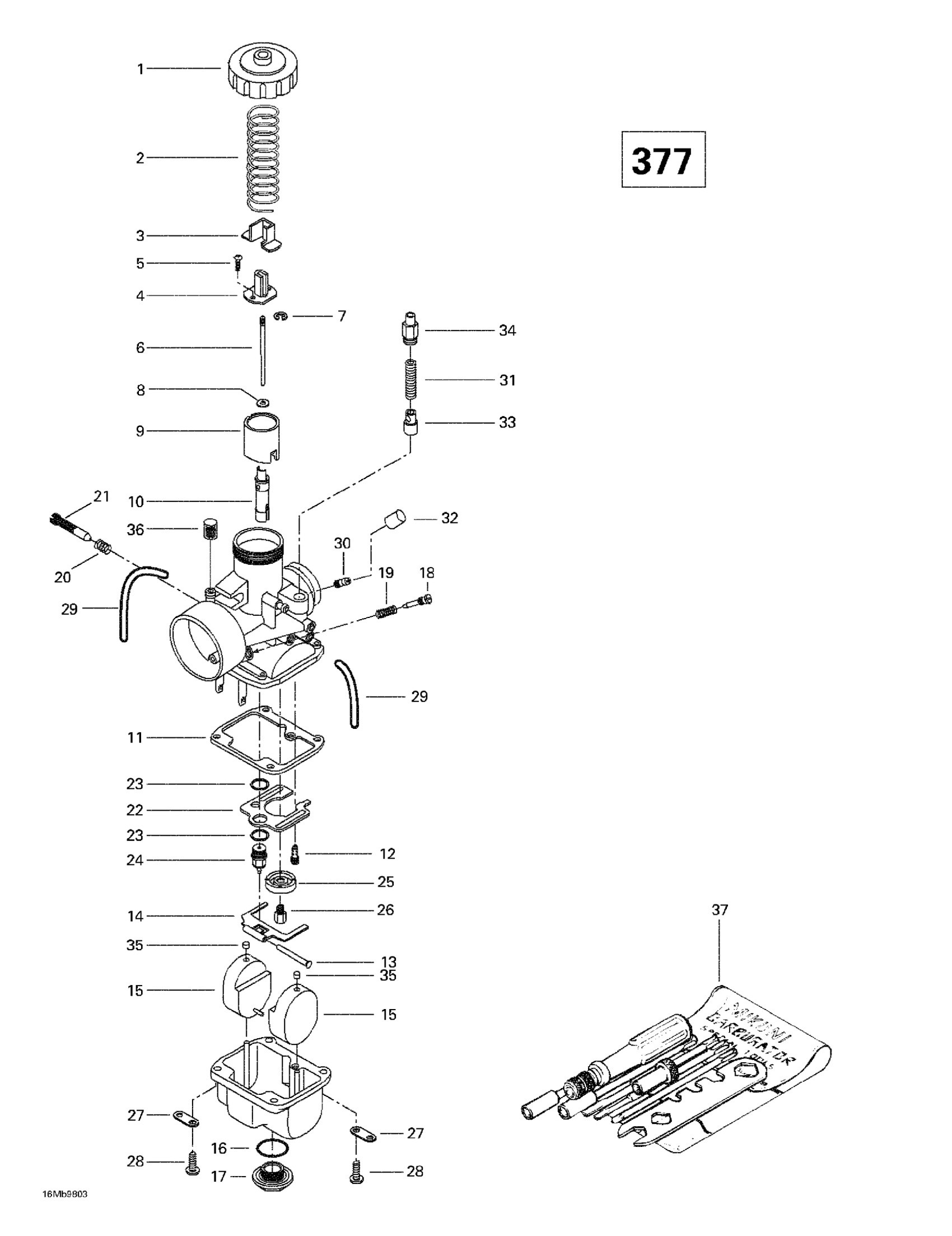 Ski-Doo Touring E, 1998 Carburetors (377) Diagram