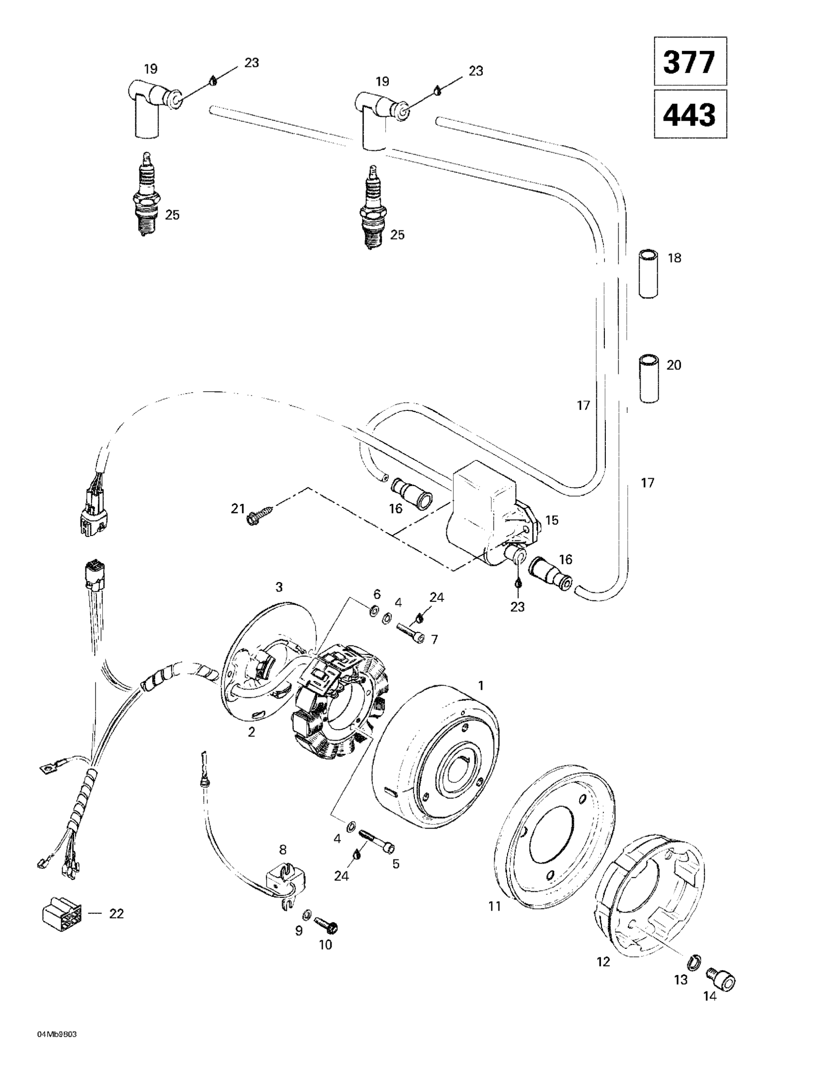 Ski-Doo Touring E, 1998 Magneto (377, 443) Diagram