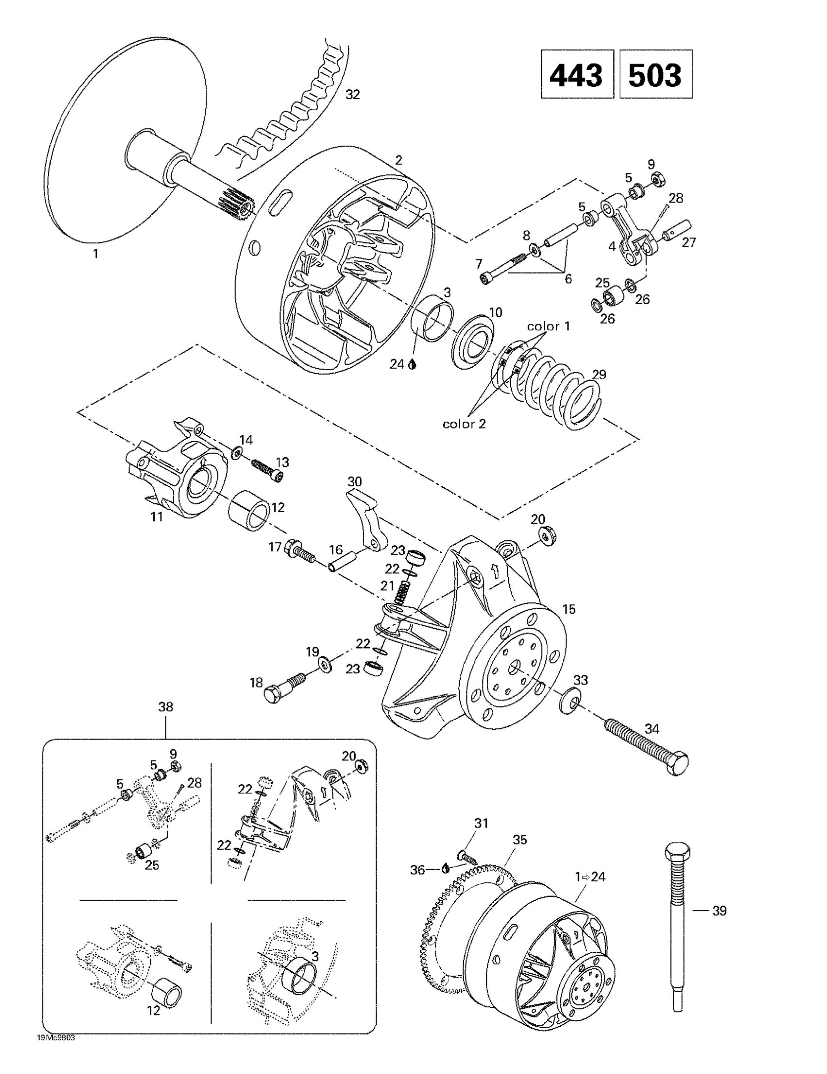 Ski-Doo Touring E, 1998 Drive Pulley (443, 503) Diagram