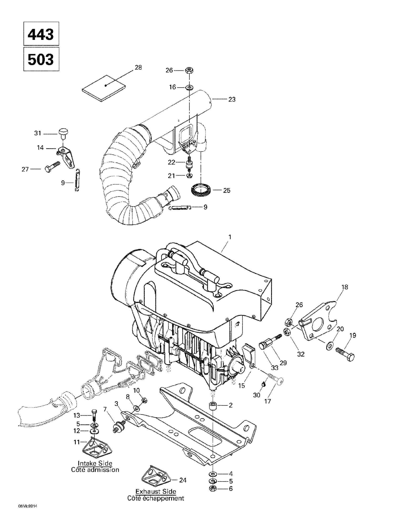 Ski-Doo Touring E, 1999 Engine Support And Muffler (443, 503) Diagram