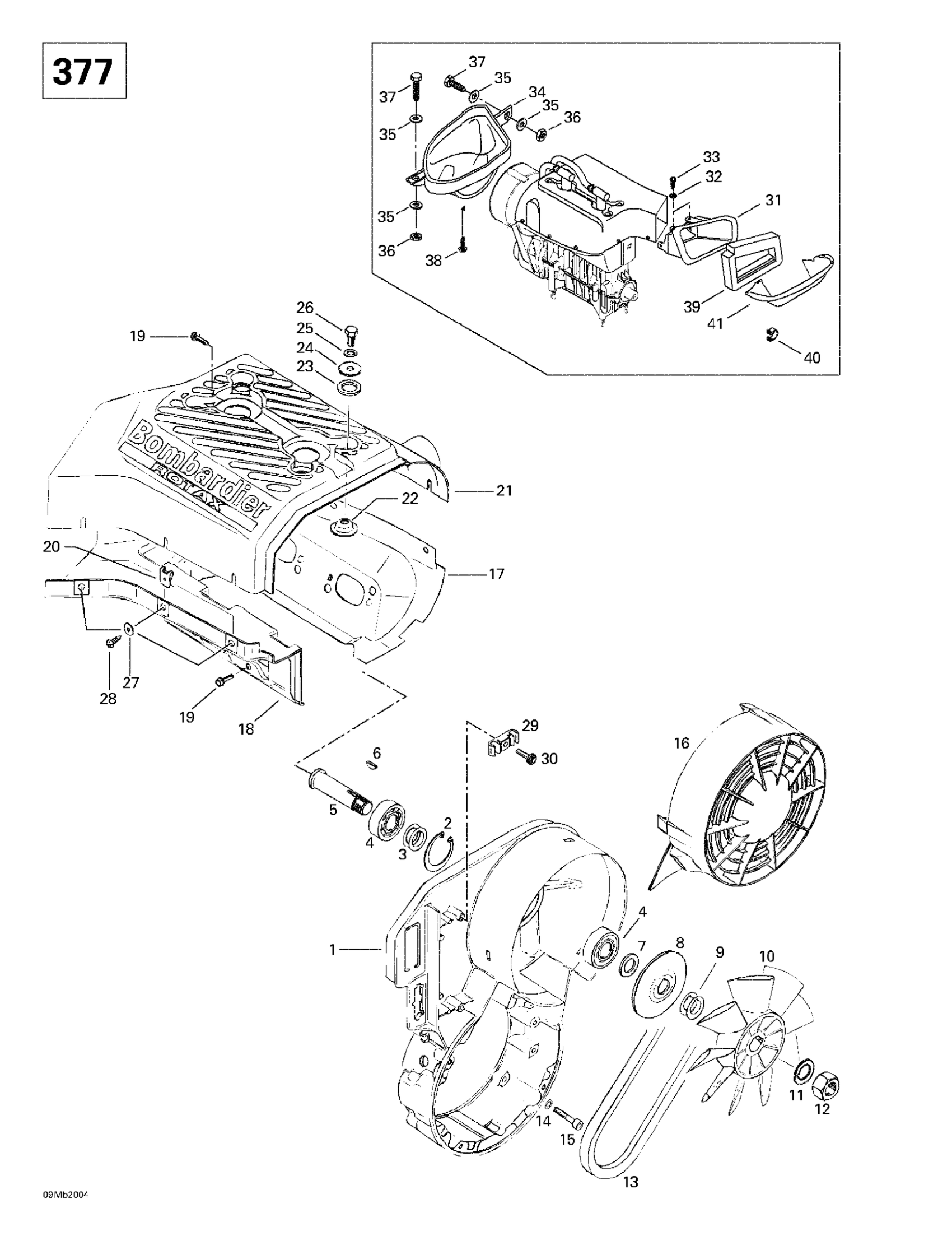 Ski-Doo Touring E, 2000 Cooling System And Fan (377) Diagram