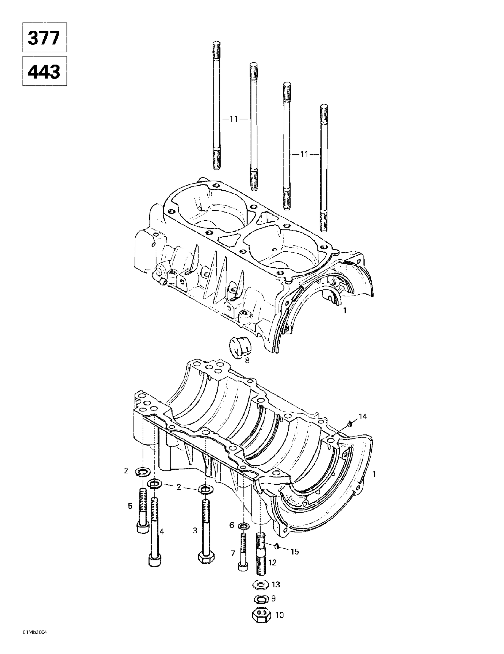 Ski-Doo Touring E, 2000 Crankcase (377, 443) Diagram