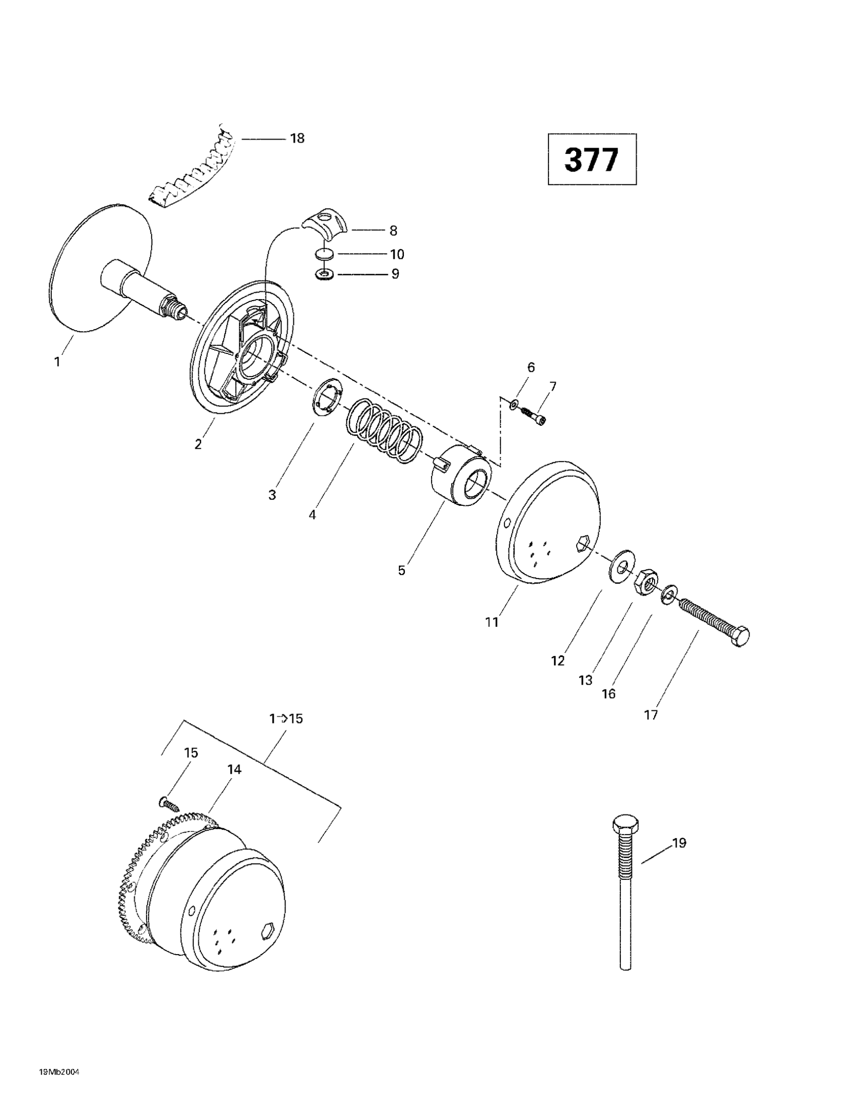 Ski-Doo Touring E, 2000 Drive Pulley (377) Diagram