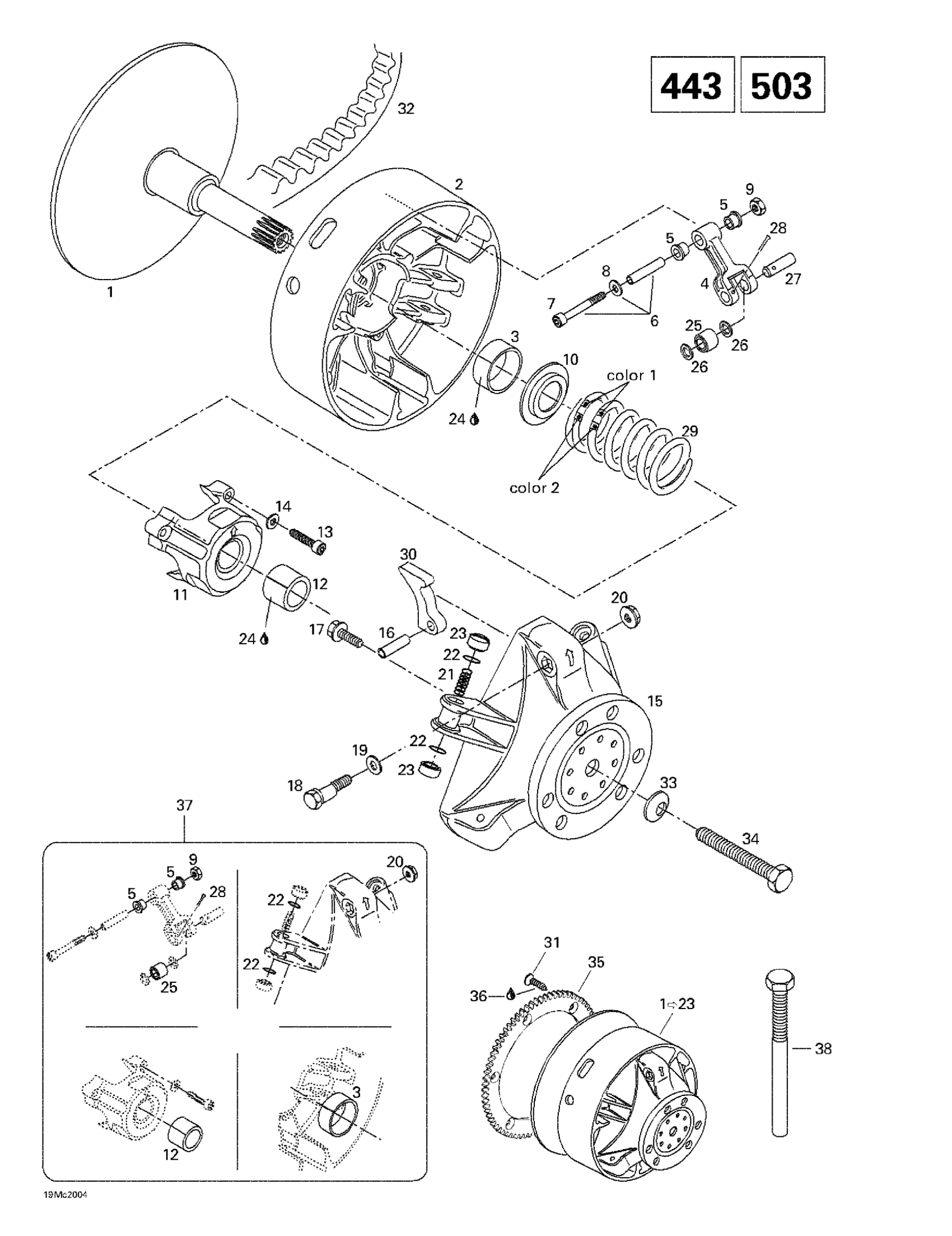 Ski-Doo Touring E, 2000 Drive Pulley (443, 503) Diagram