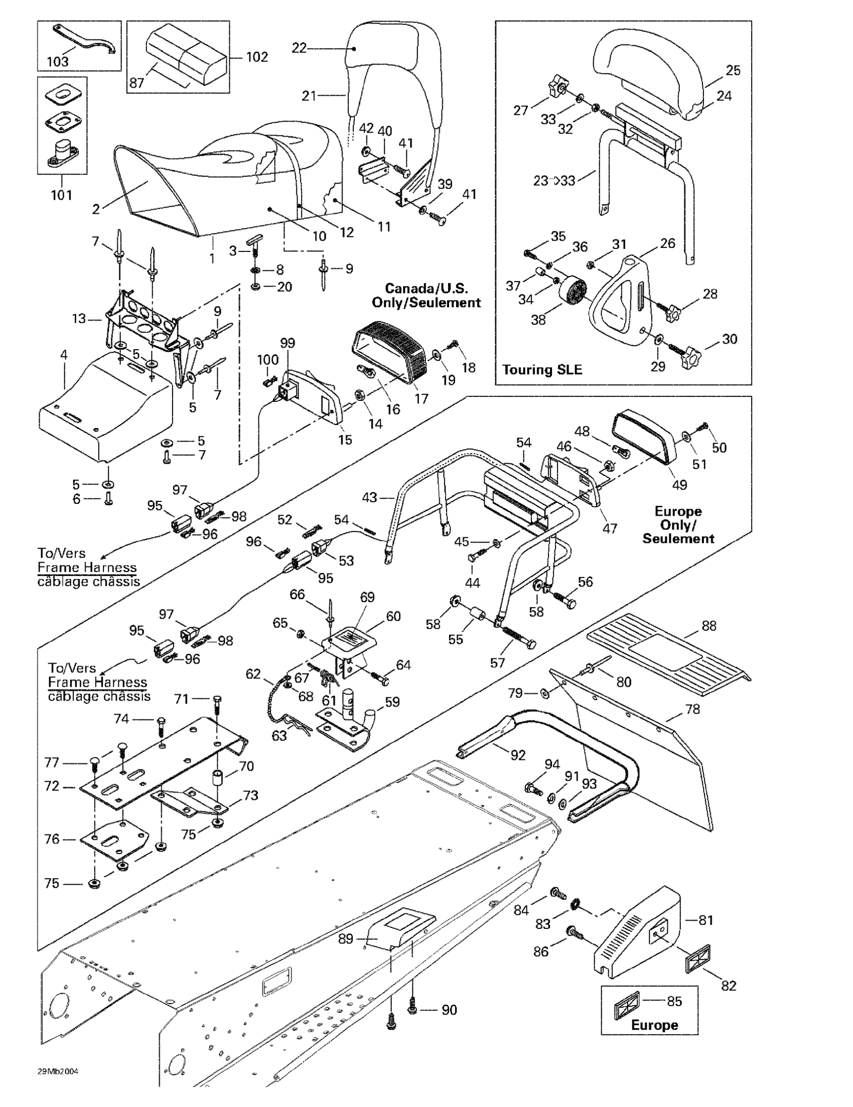 Ski-Doo Touring E, 2000 Seat And Accessories Diagram