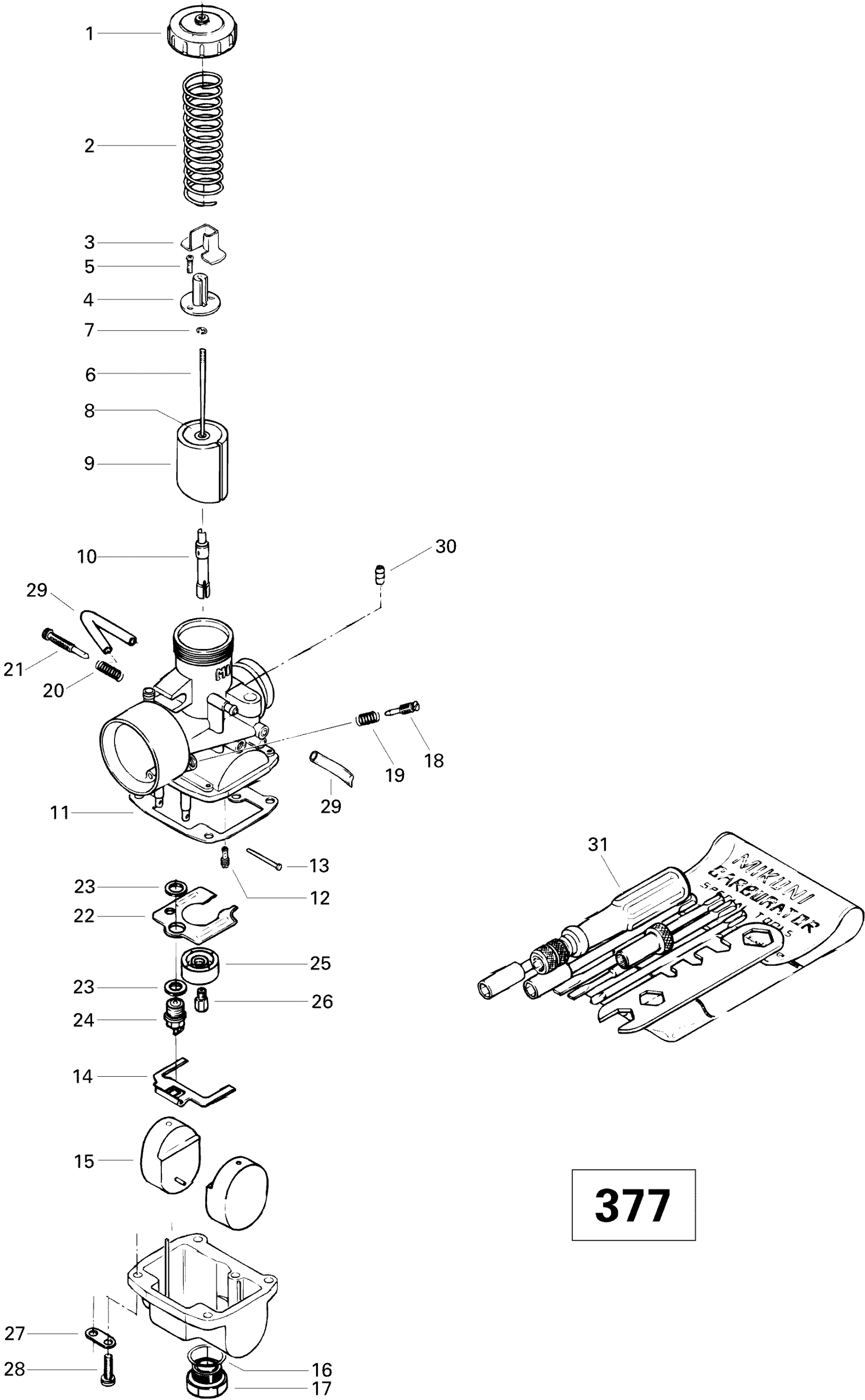 Ski-Doo Touring E LT, 1996 Carburetor 377 Diagram