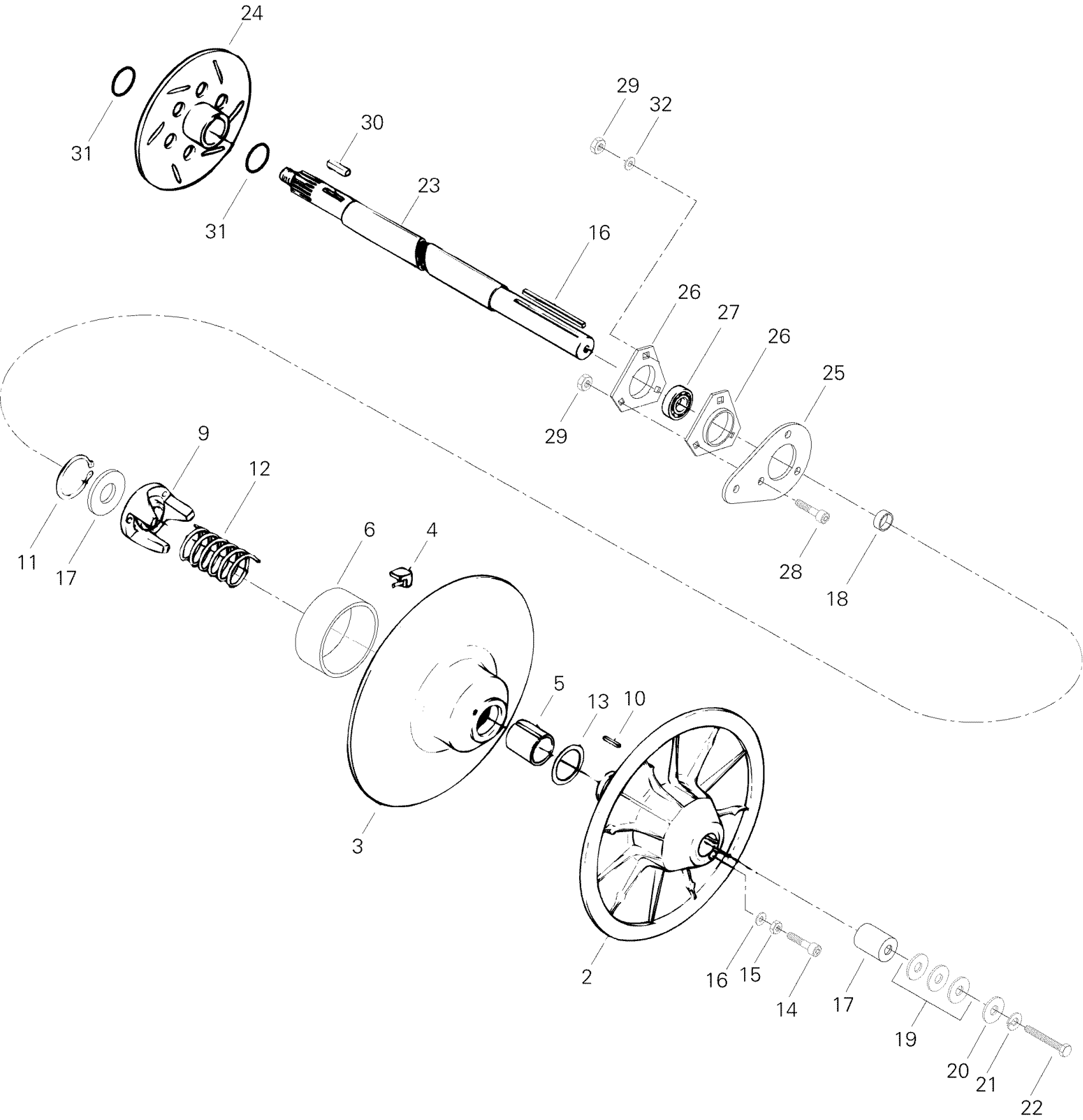 Ski-Doo Touring E LT, 1996 Driven Pulley Diagram