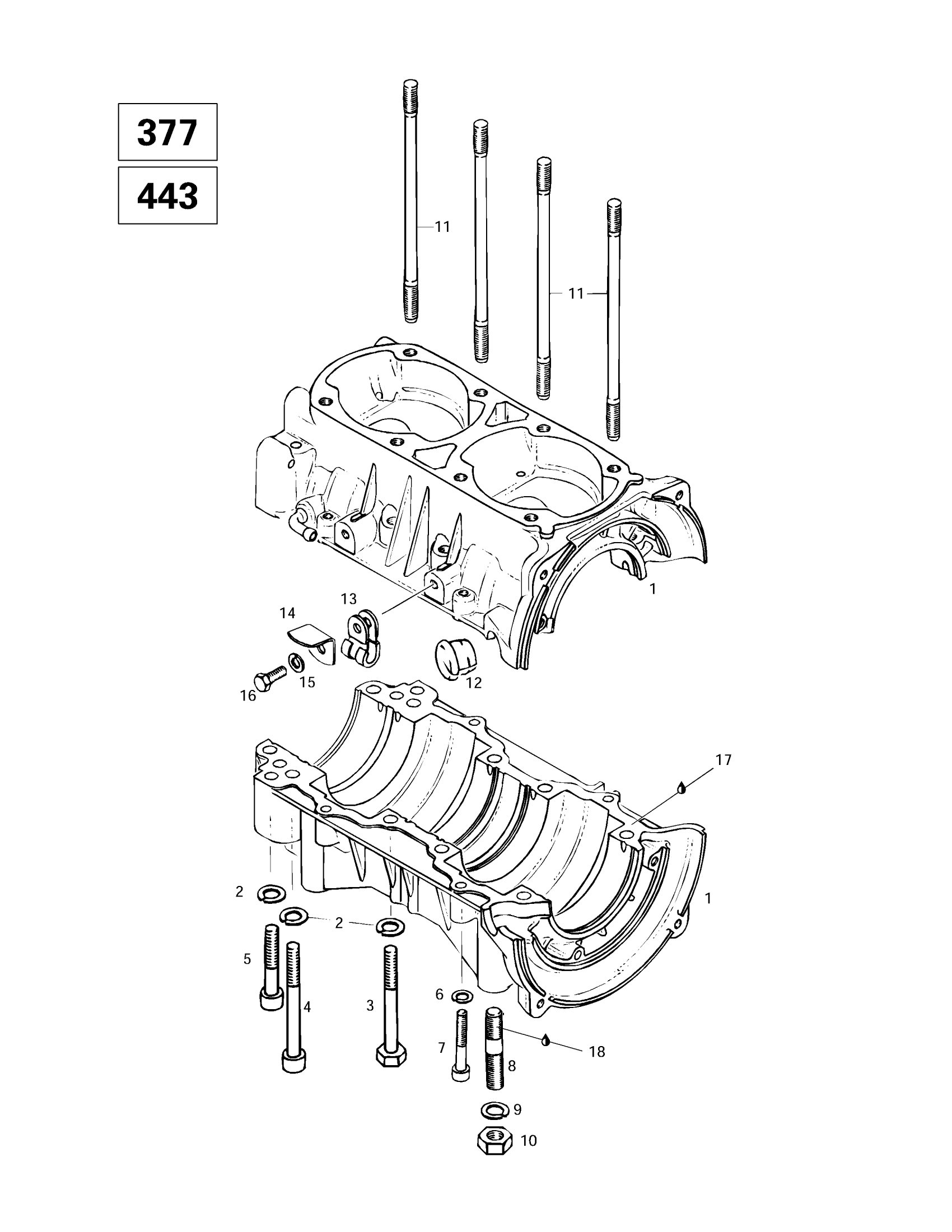 Ski-Doo Touring E LT, 1997 Crankcase (377, 443) Diagram