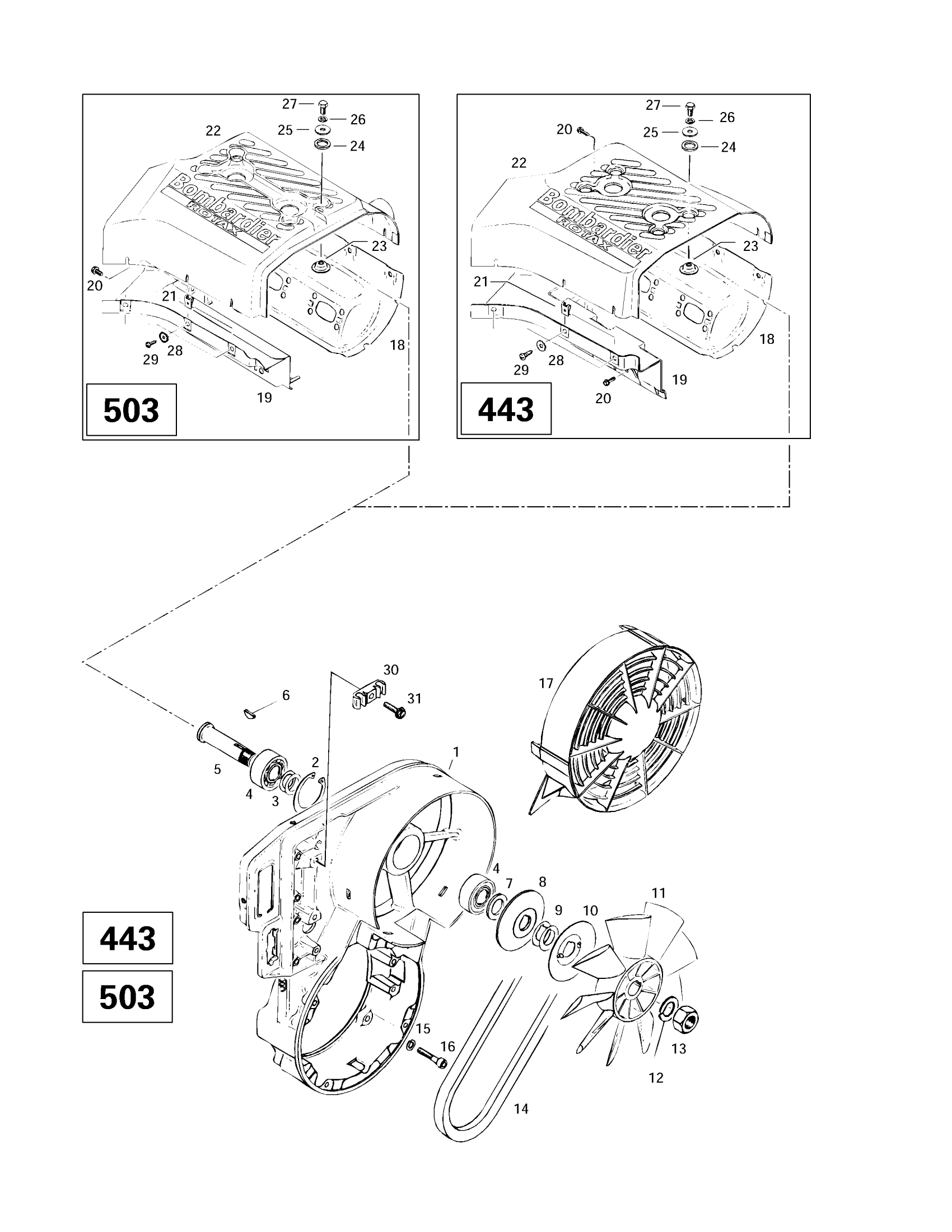 Ski-Doo Touring E LT, 1997 Fan (503, 443) Diagram