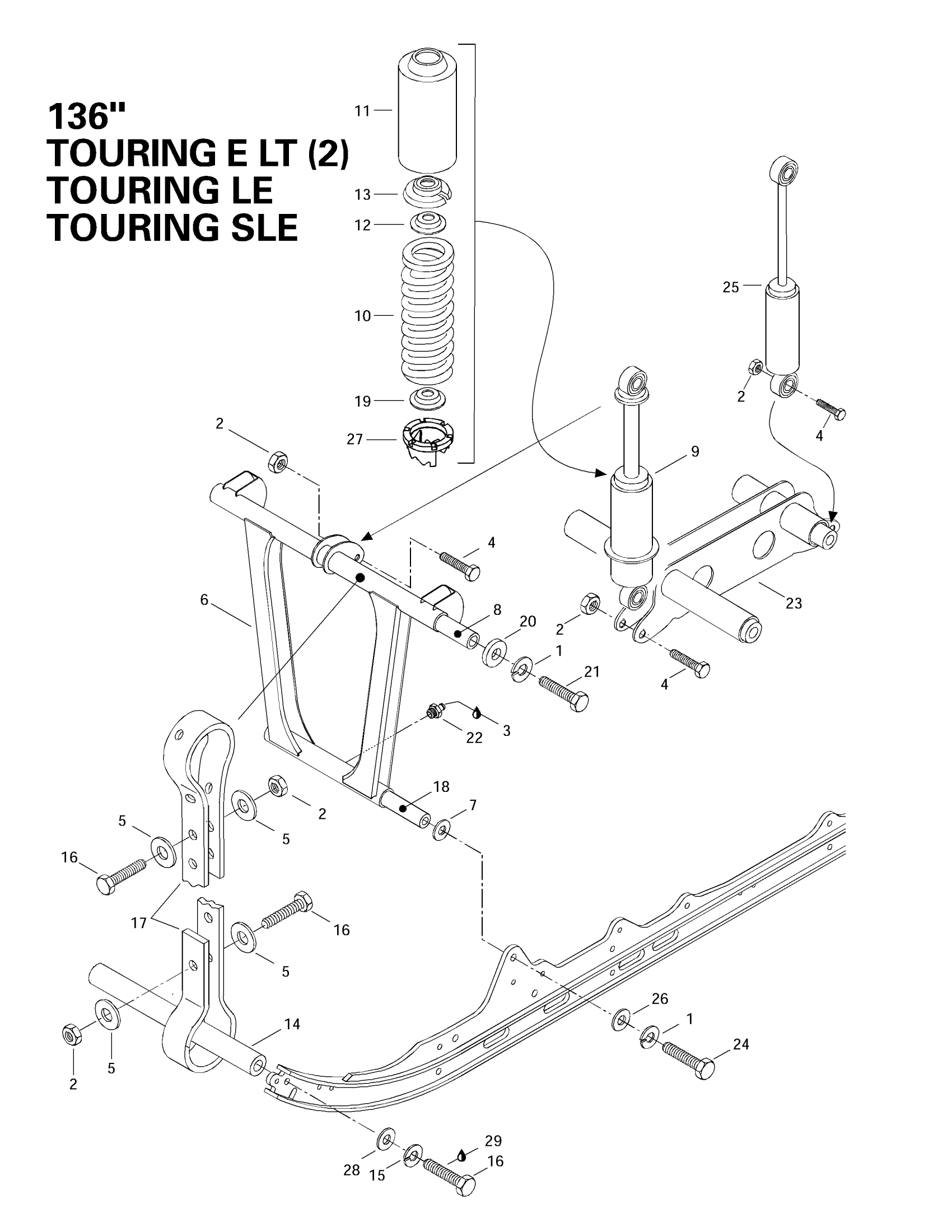 Ski-Doo Touring E LT, 1997 Front Arm, Rear Suspension 136” Diagram