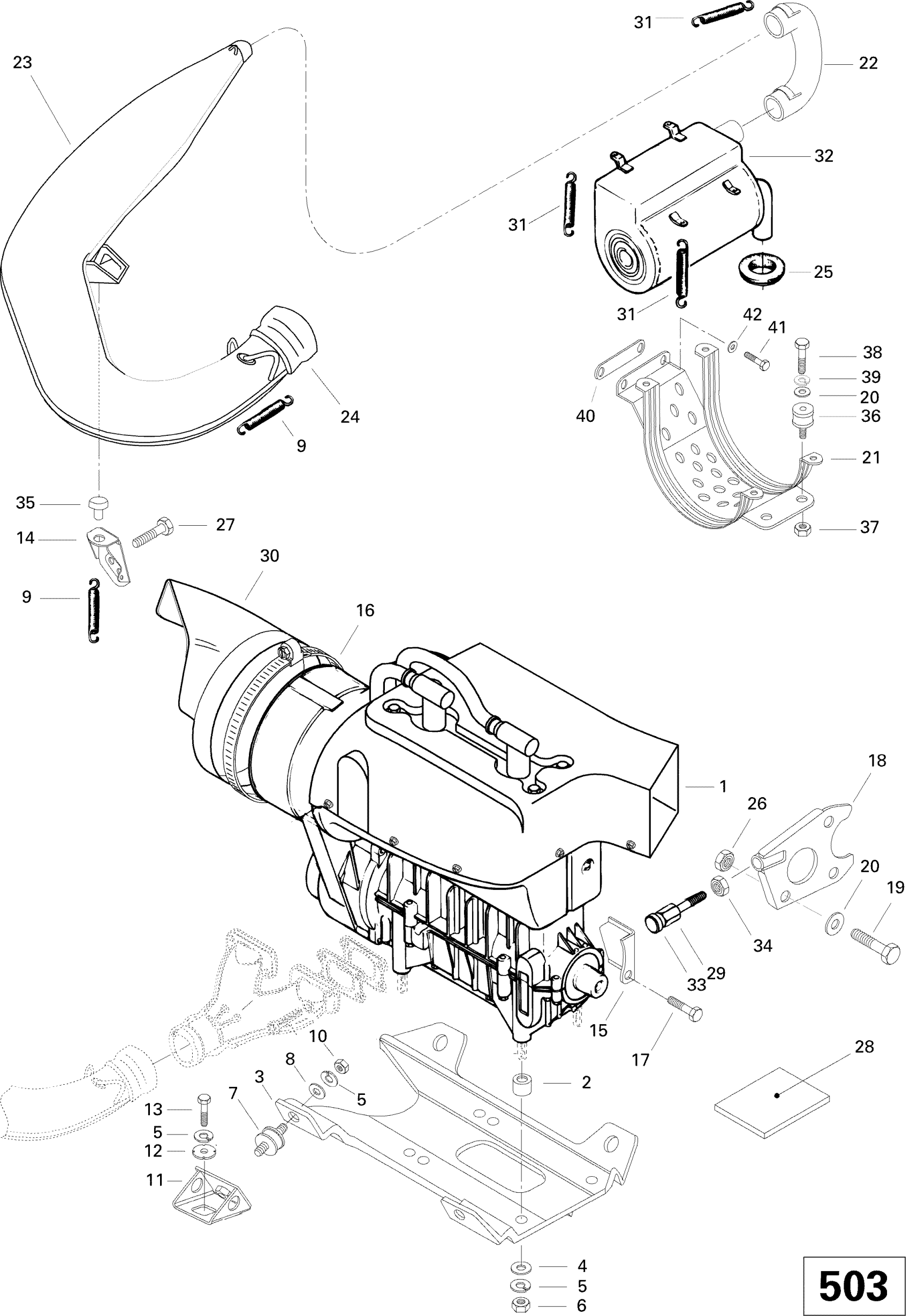 Ski-Doo Touring SLE, 1996 Engine And Engine Support 503 Diagram