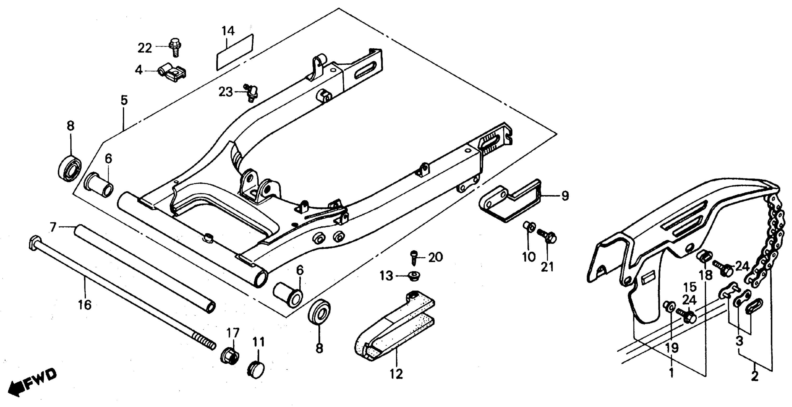 Honda TR200A (86) FATCAT, JPN, VIN# JH2TE110-GK500001 SWINGARM Diagram