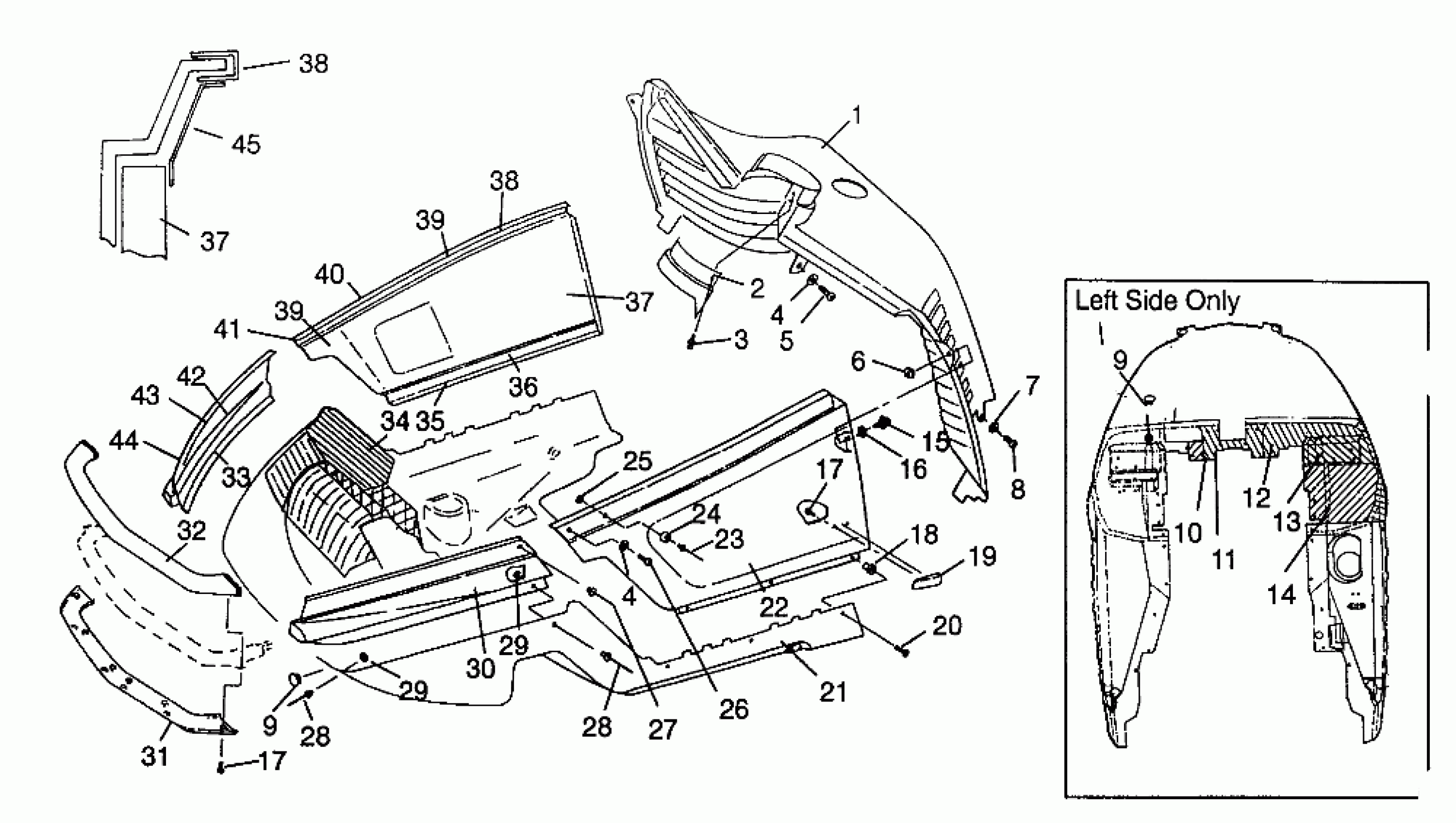 BUMPER,RH,SIDE/FOIL,BLK.MT. (Incl. 42, 43)